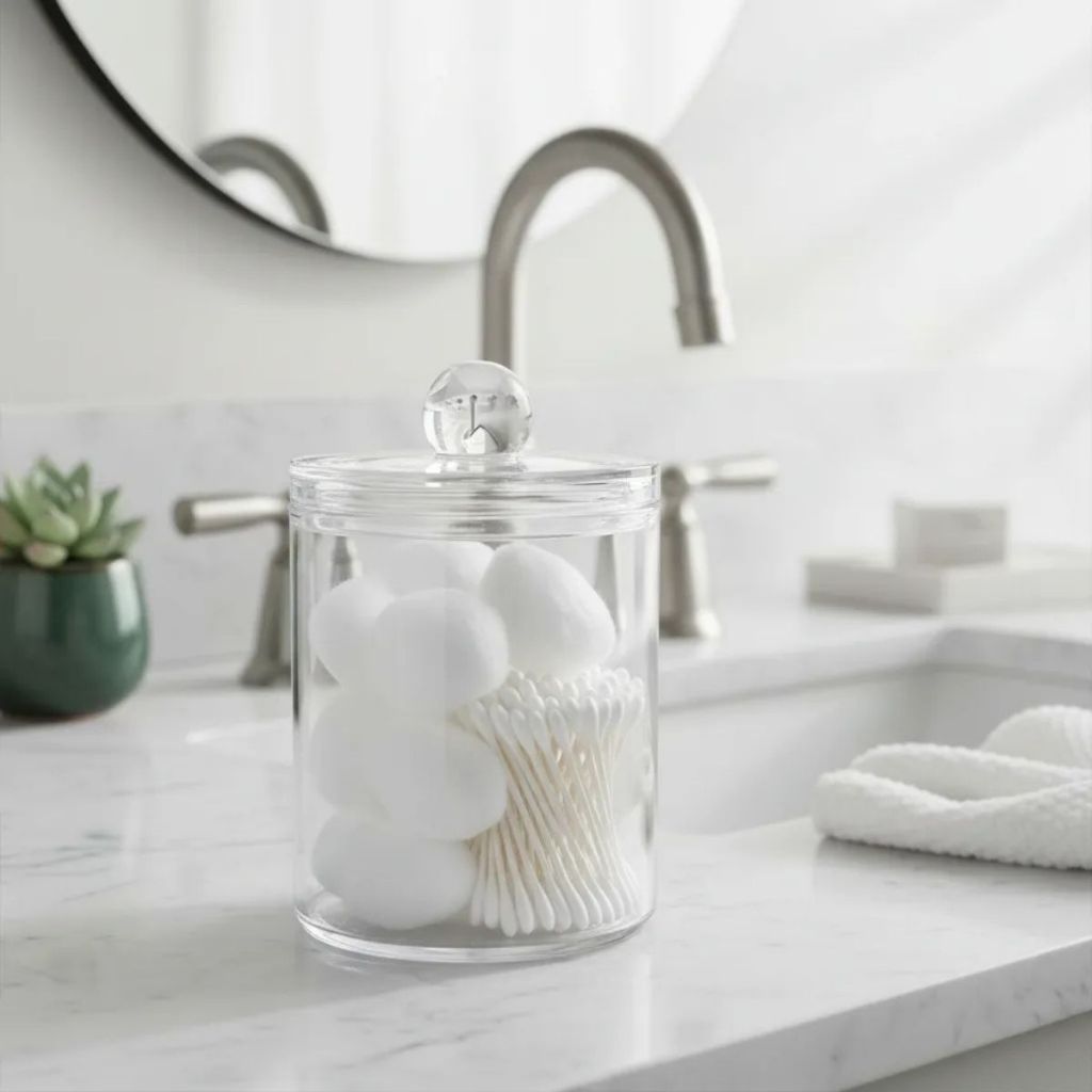 Porta Hastes de Algodão Cotonette Algodão Organizador Acrilico Banheiro Porta Algodão com Tampa