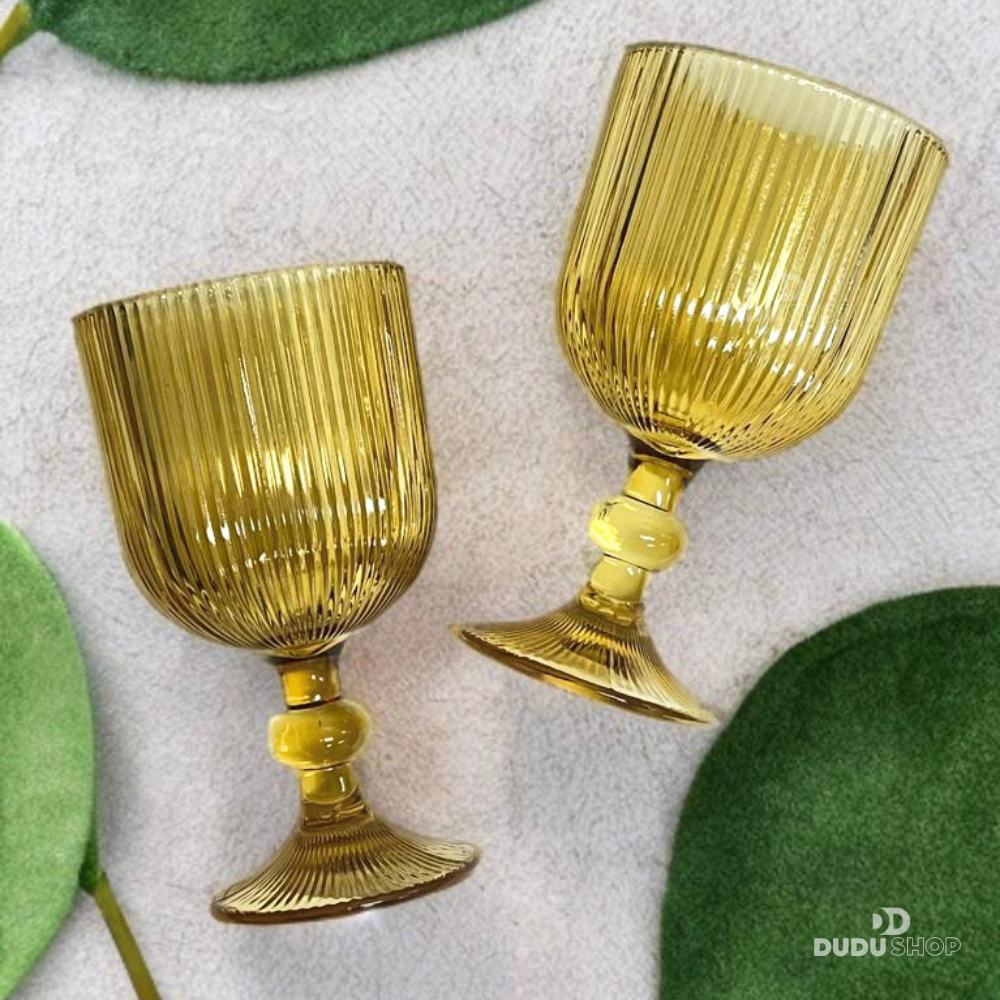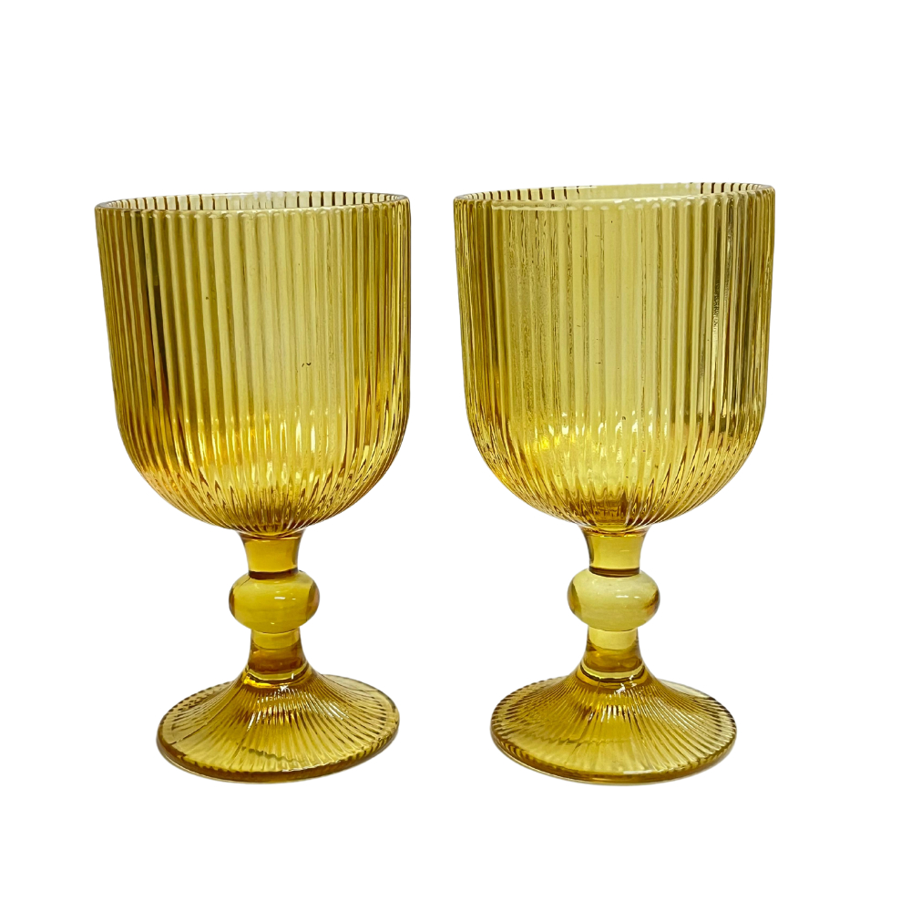 2 Taças De Vidro Canelada Âmbar Taça Cozinha Casa Taça Amarelo Vidro 380ml
