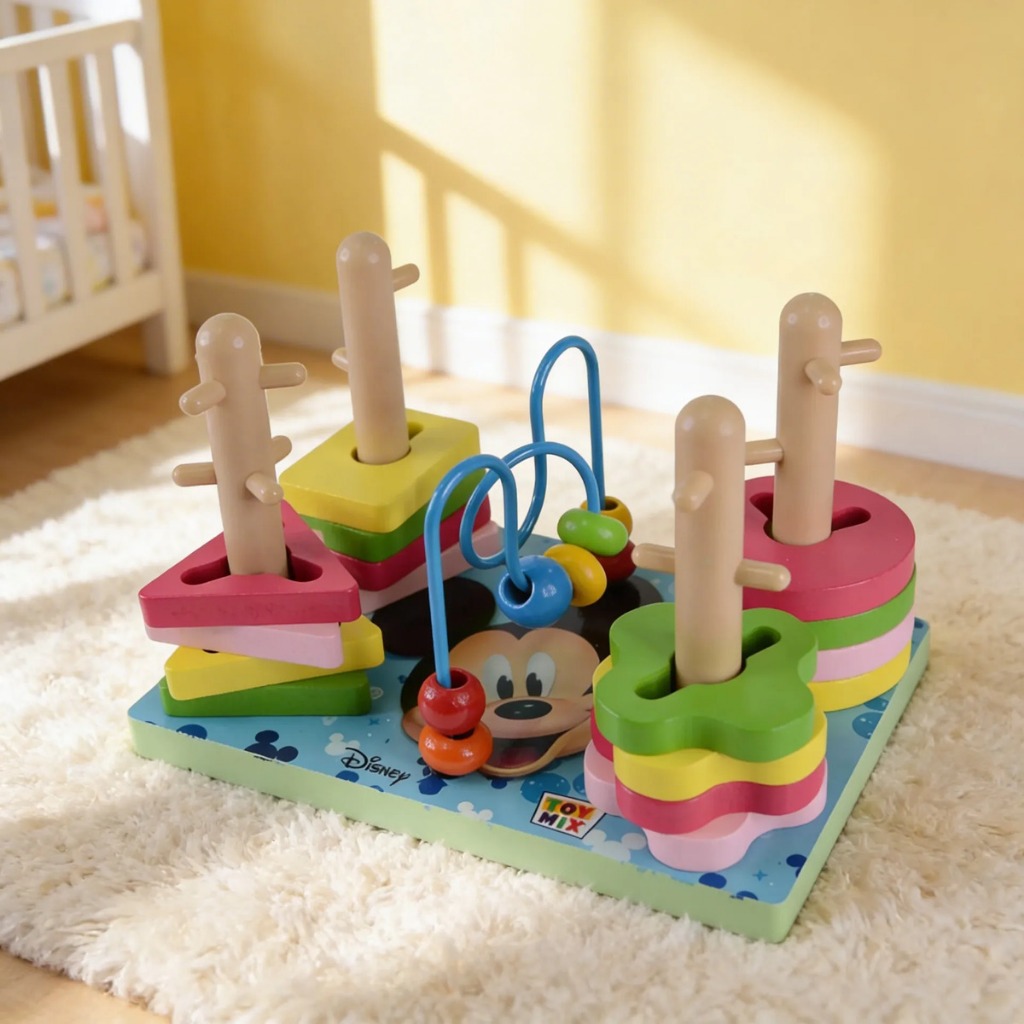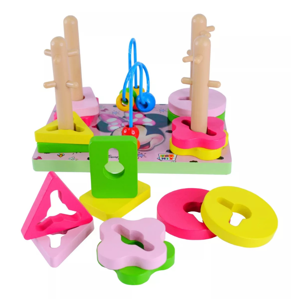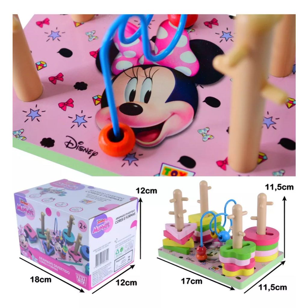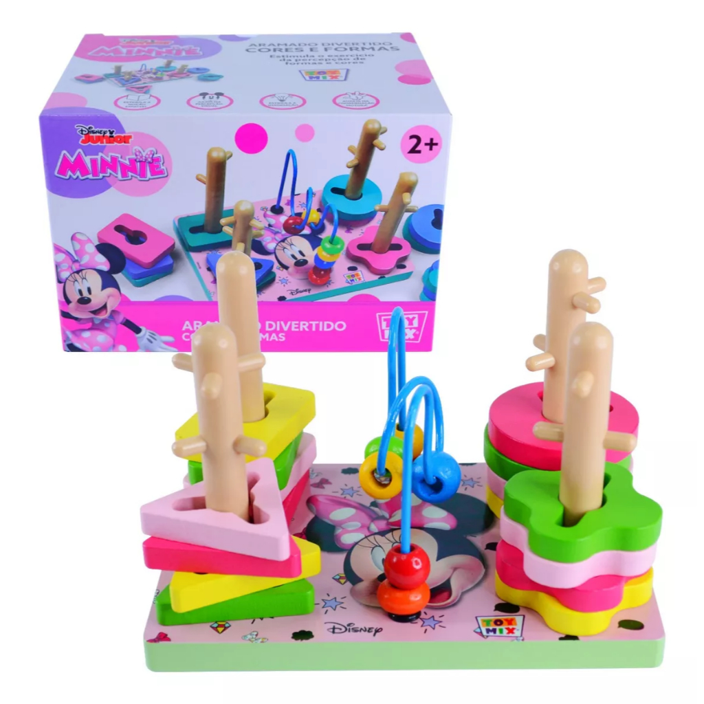 Brinquedo Pedagógico Aramado Cores e Formas Disney Montessori Montanha Russa MDF Educativo Colorido