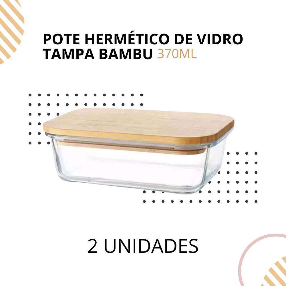 Conjunto Potes Vidro Hermético 370ml Marmita Potes De Vidro Hermético Pote Com Tampa Bambu