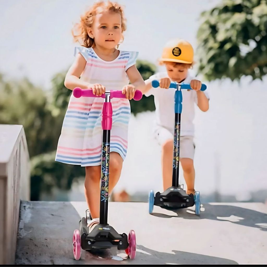 Patinete com 3 Rodas Brinquedo com Luz 3 Altura Patinete Infantil Presente Patinete Roda de Silicone