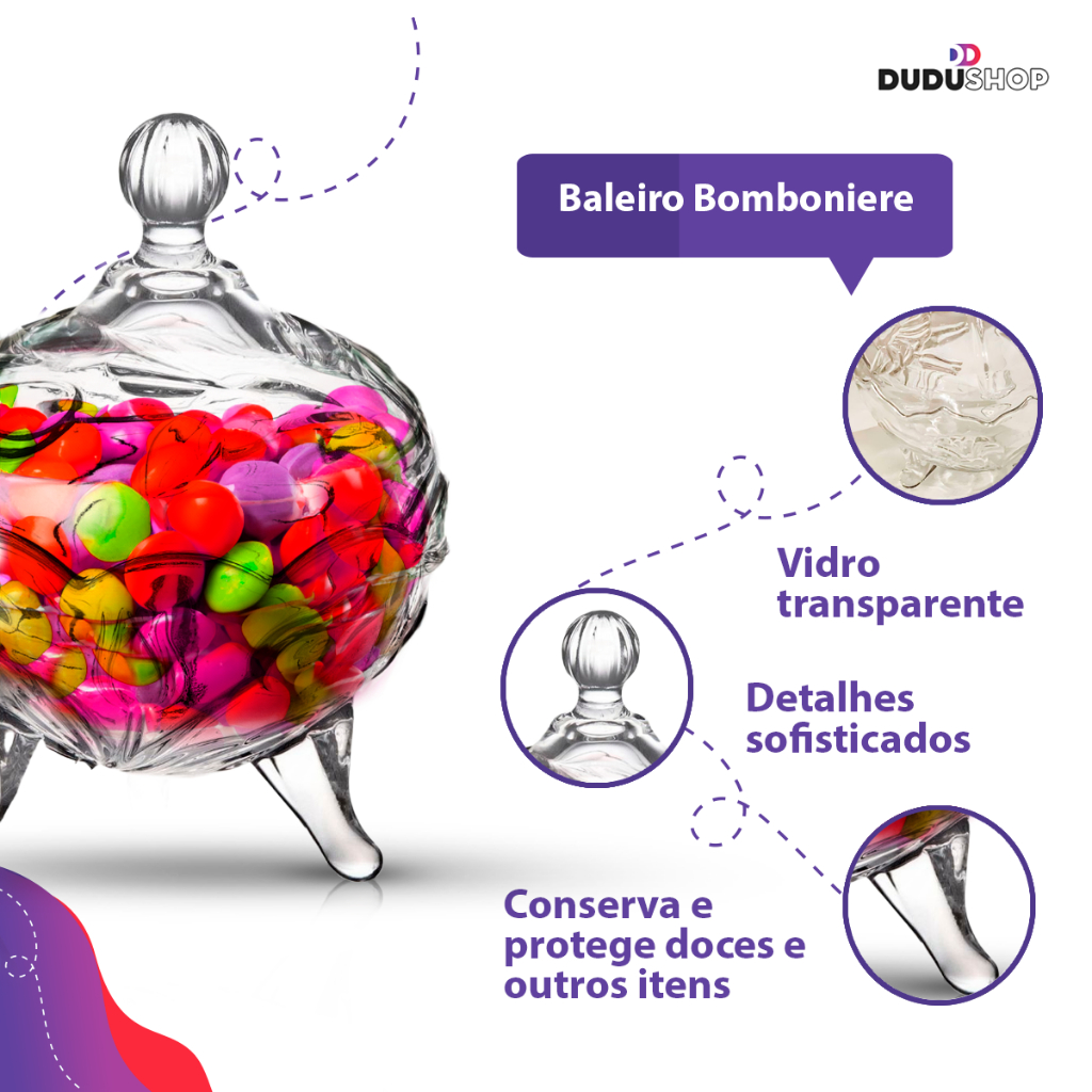 Baleiro Bomboniere Porta Balas Vidro Decoração Casa Porta Doces Recepção Baleiro 13cm