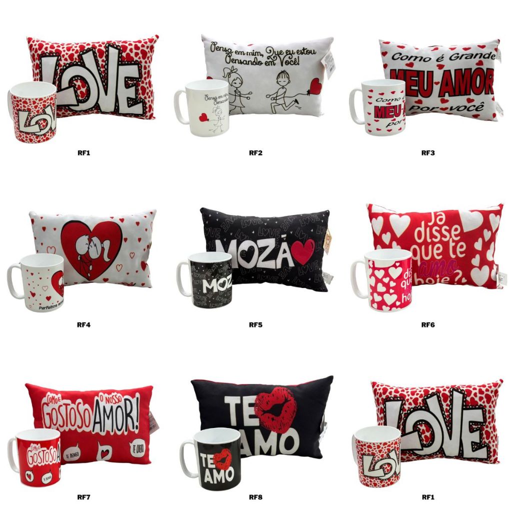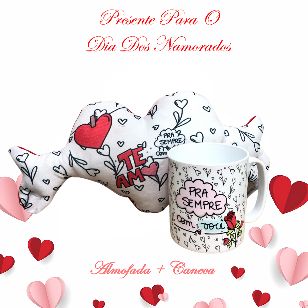 Kit Presente Para Namorados Almofada + Caneca Lembrancinha Com Frases Vários Modelos