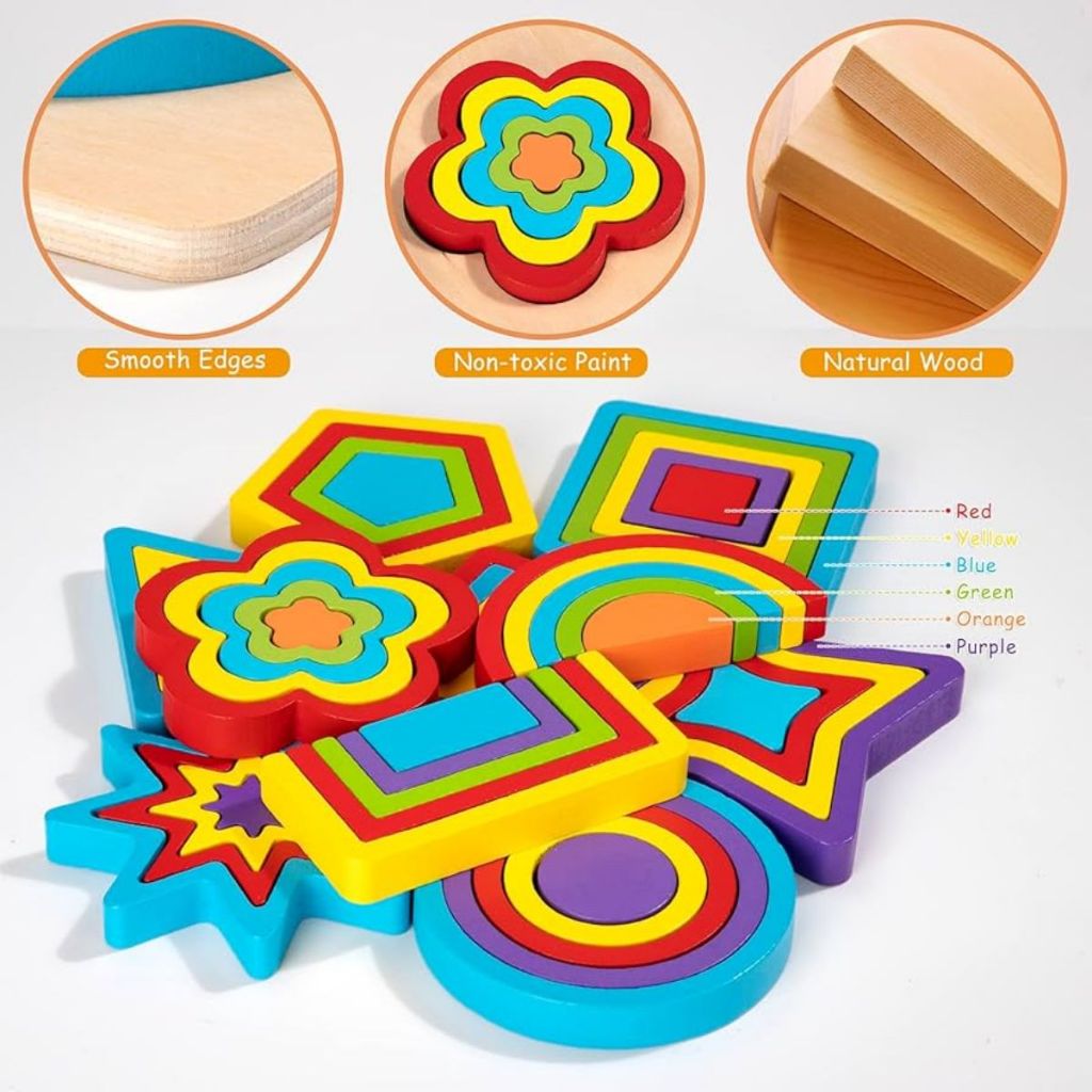 Quebra Cabeça Encaixe Divertido Formas e Cores Geometrico Educativo MDF Montessori Pedagogico ToyMix