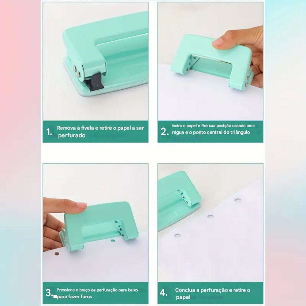 Perfurador Manual De Papel Furo Duplo Tons Pastéis Verde