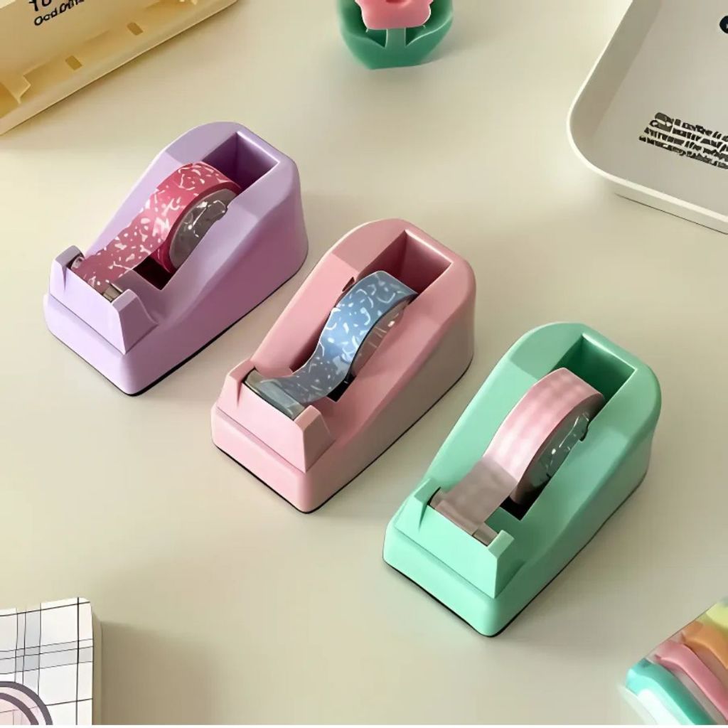 Suporte Fita Adesiva Durex Pequeno De Mesa Washi Tape Rosa Lilás Verde Cores Candy Papelaria Fofa