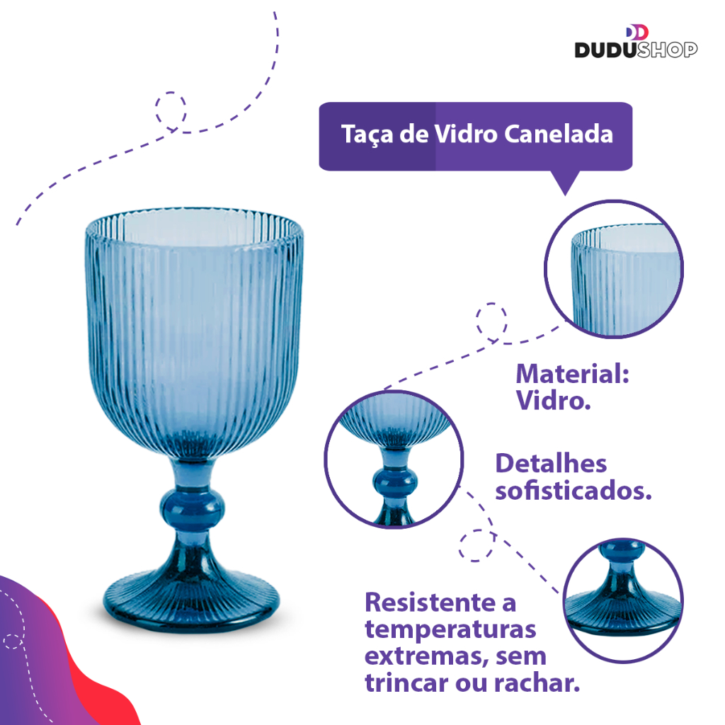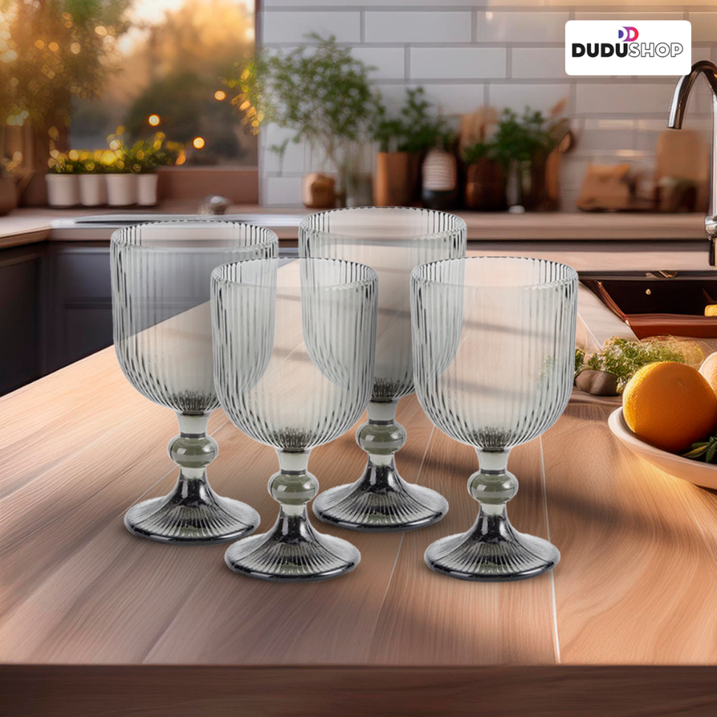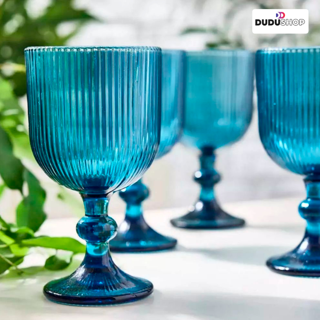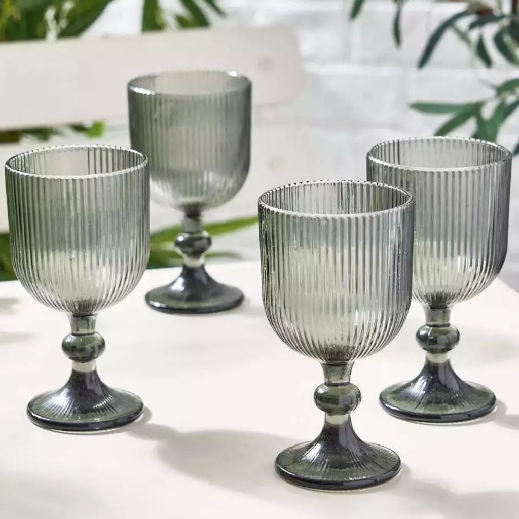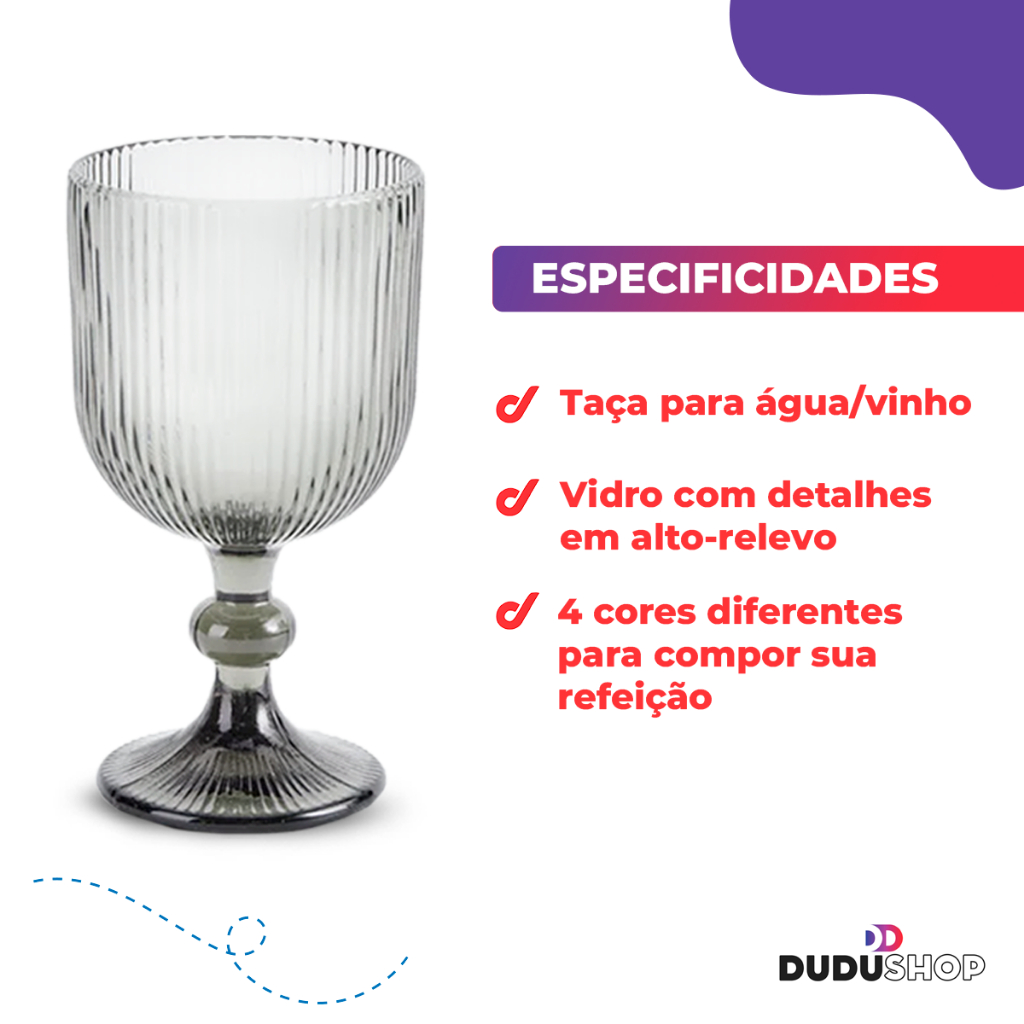 Jogo Taça de Vidro Canelada 380ml Taça para Bebidas Conjunto de Vidro Cozinha Enxoval Fume