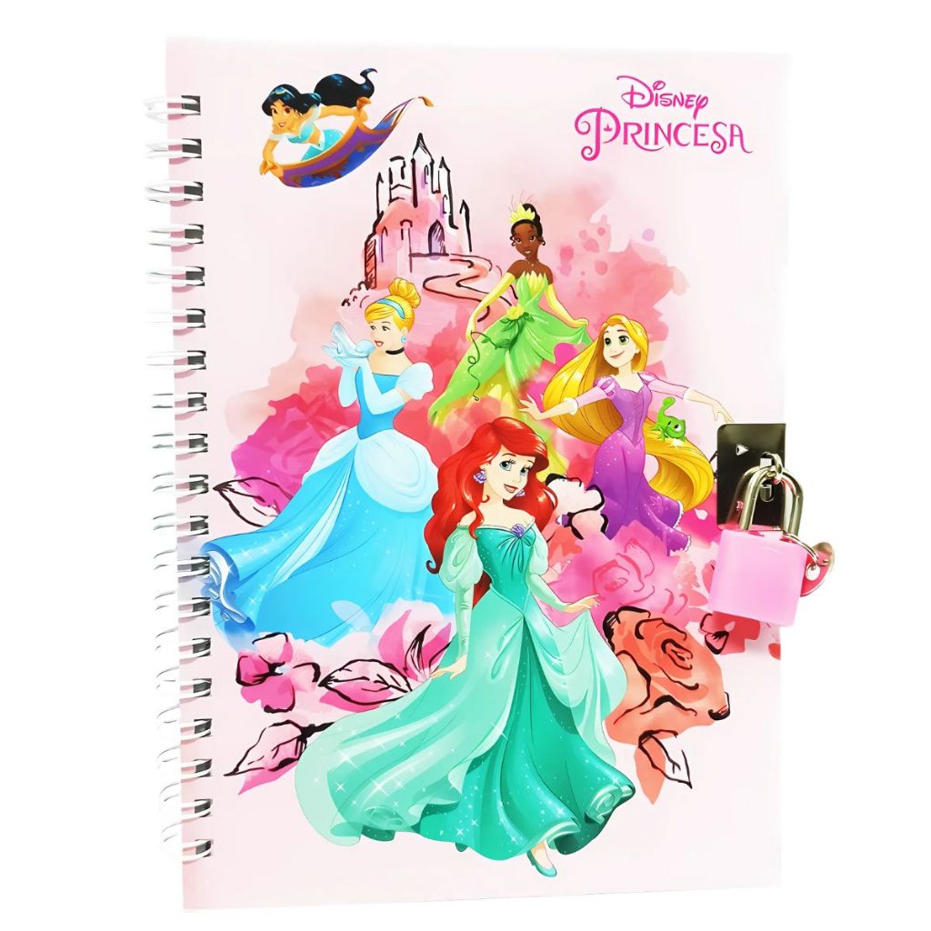 Diario Infantil Caderno com Cadeado 48FL Disney Princesas Mickey Stitch Minnie Ariel Sereia Presente