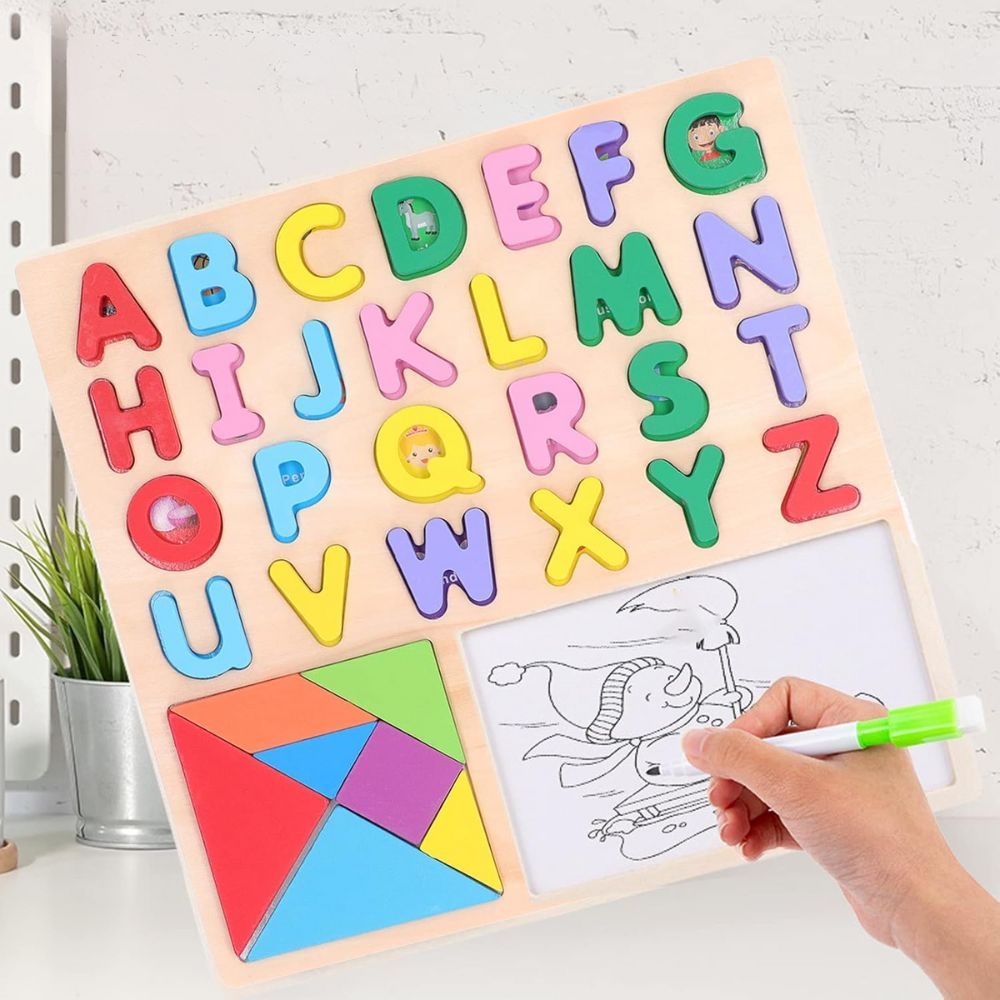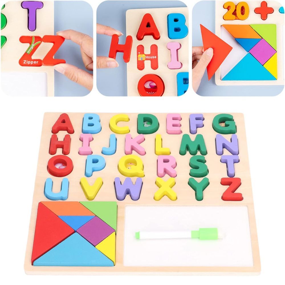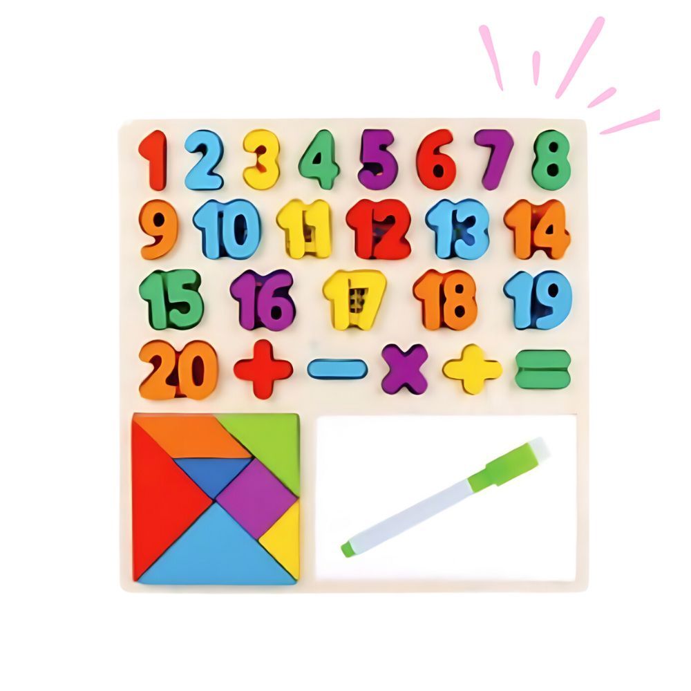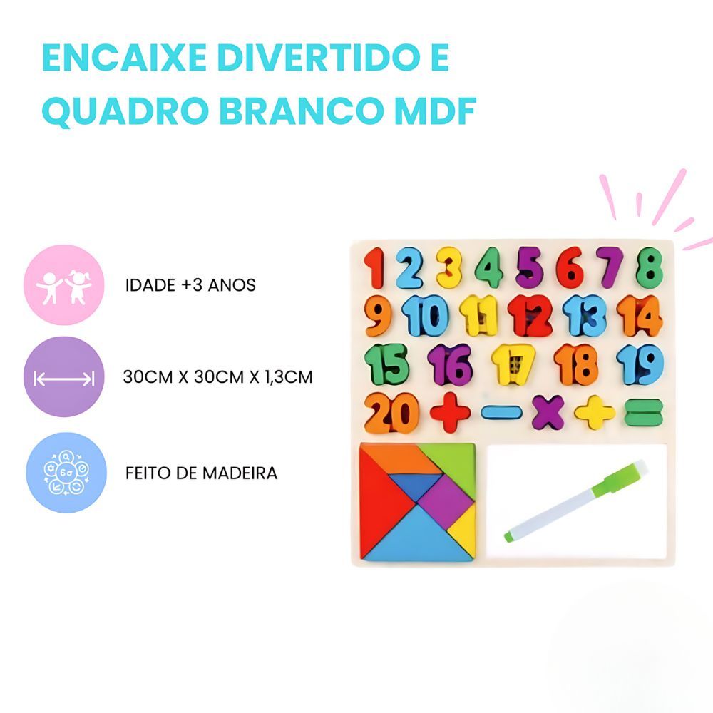 Tabuleiro Educativo Pedagógico Montessori Encaixe Números e Letras Com Quadro Caneta para Desenhar