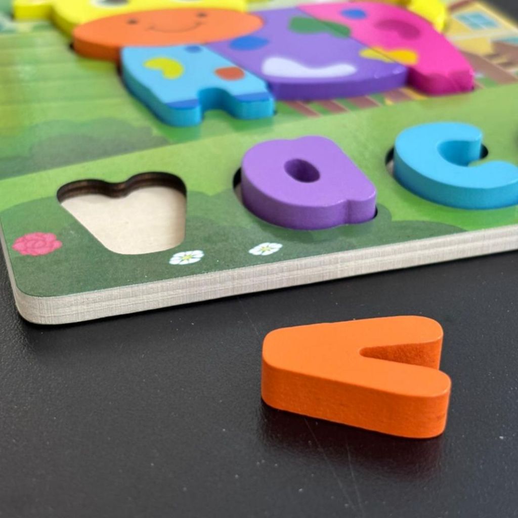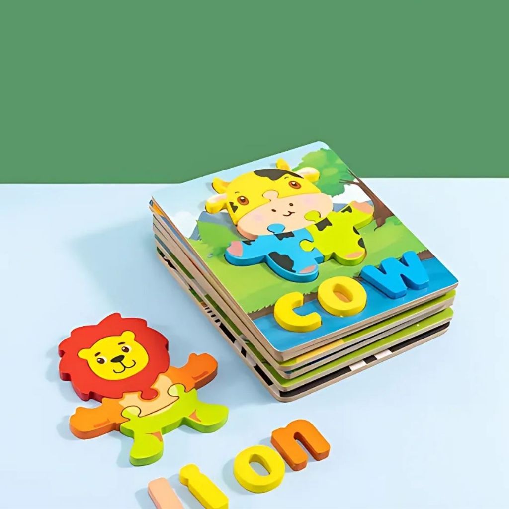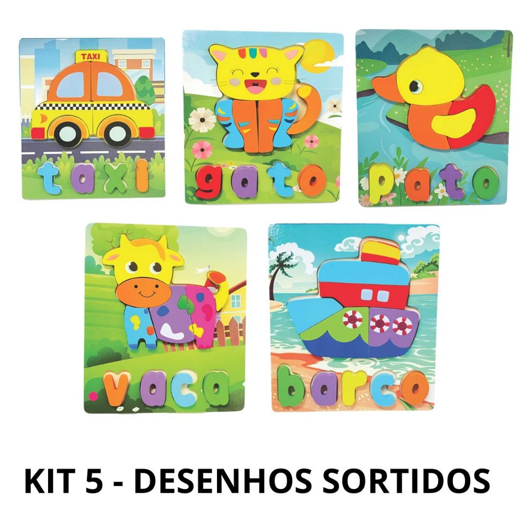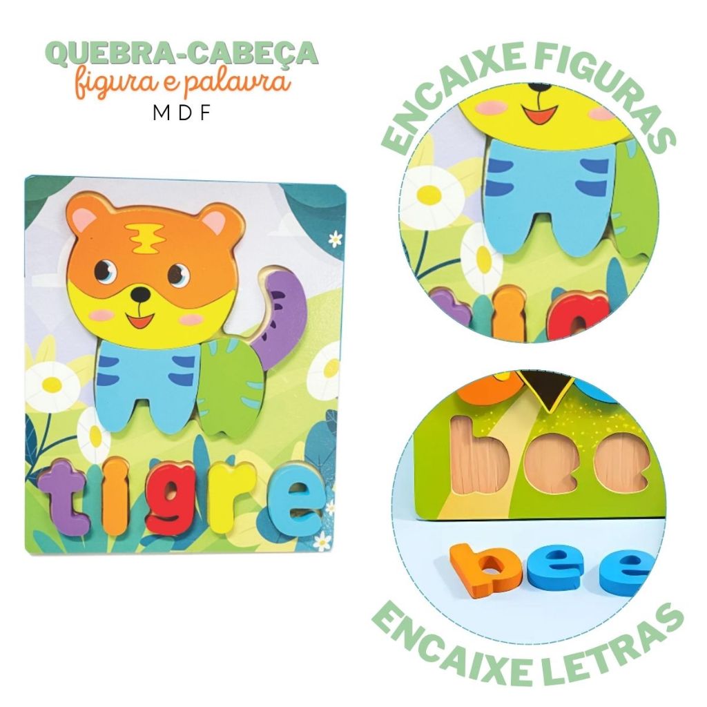 Quebra Cabeça Animais Figura e Palavra Educativo Divertido Brinquedo Montessori MDF Toymix