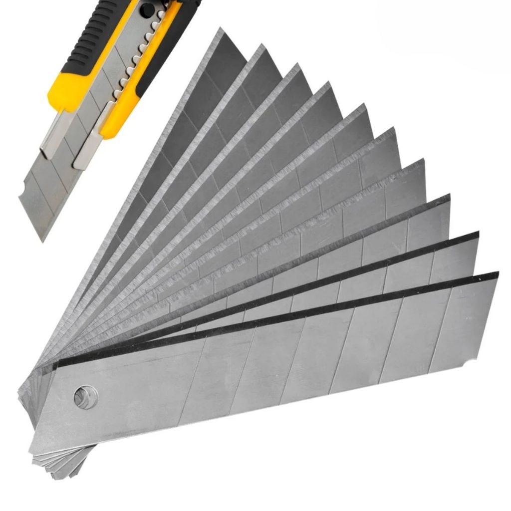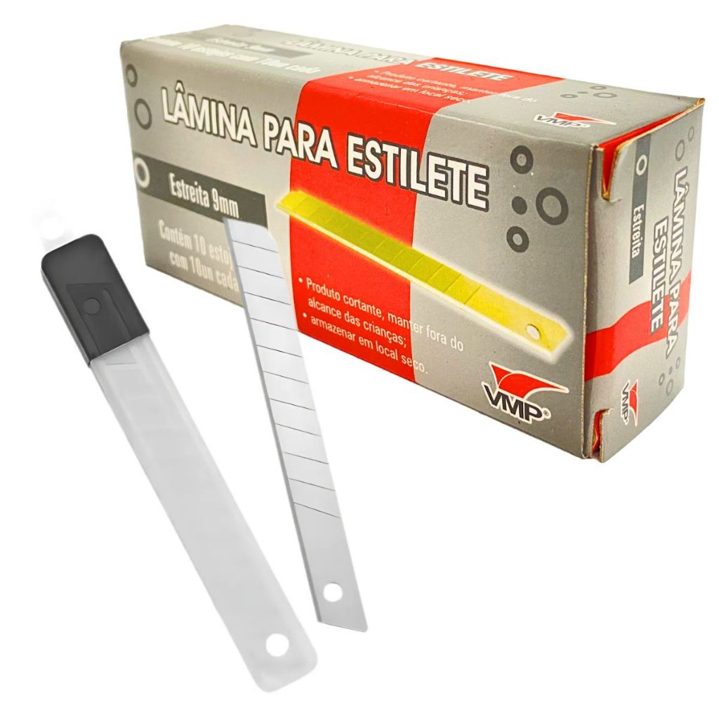 Lâmina para Estilete de Corte 9mm Tipo Estreita em Aço Caixa com 100 unidades Embalagem Encomenda