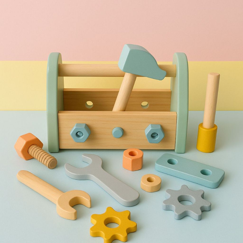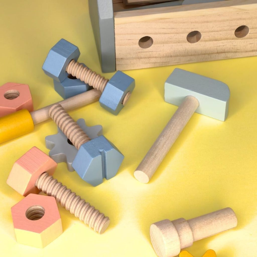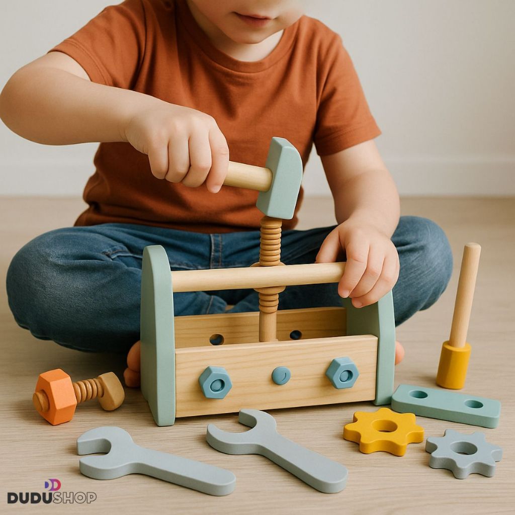 Brinquedo MDF Caixa Ferramentas 25pcs Divertida Montessori Encaixe Madeira Brinquedos Bebes Crianças