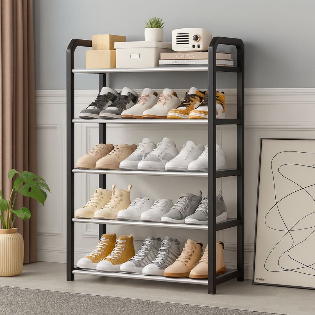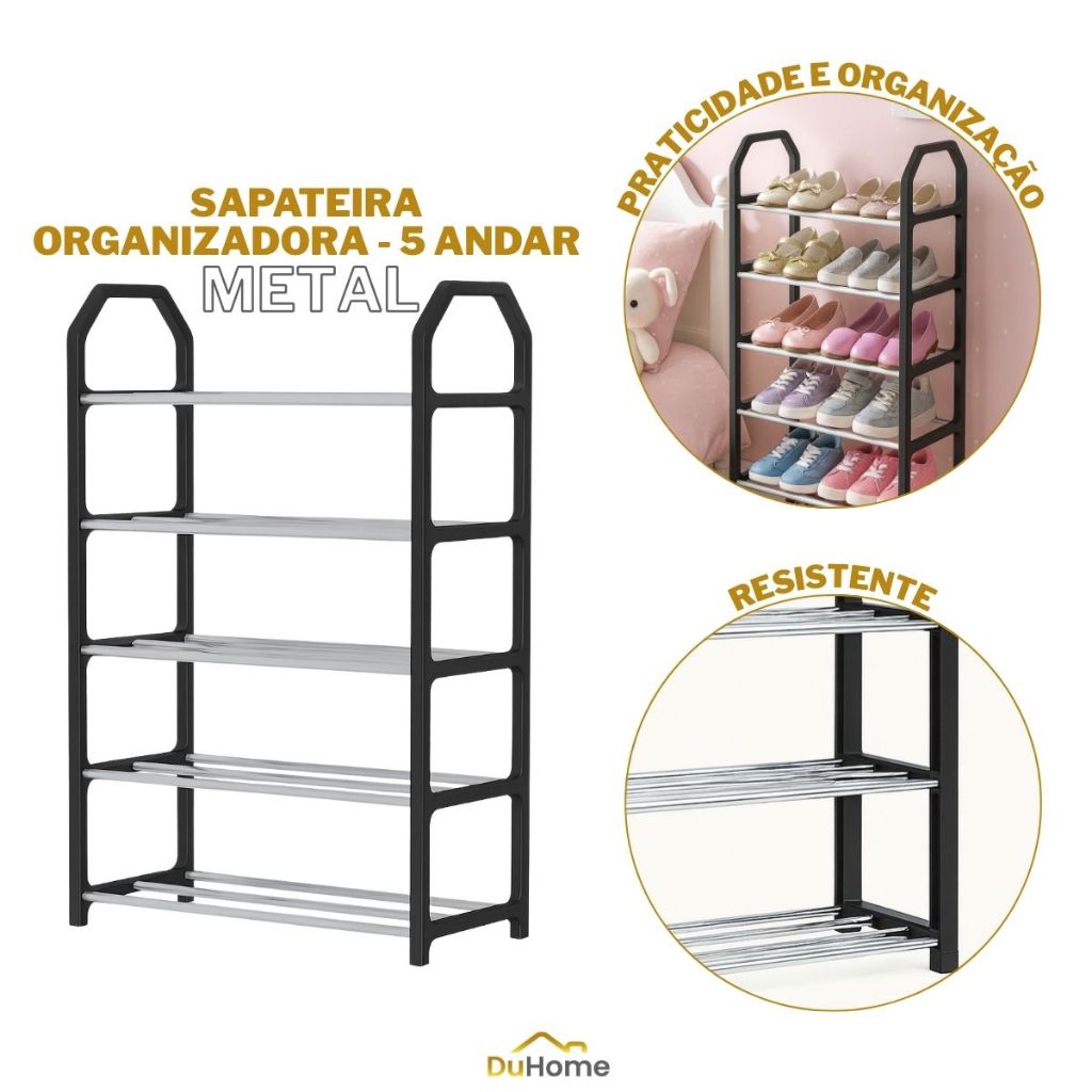 Sapateira Organizadora Metal Preta Resistente 4/5 Andares Multiuso Calçados Organização Casa Quarto