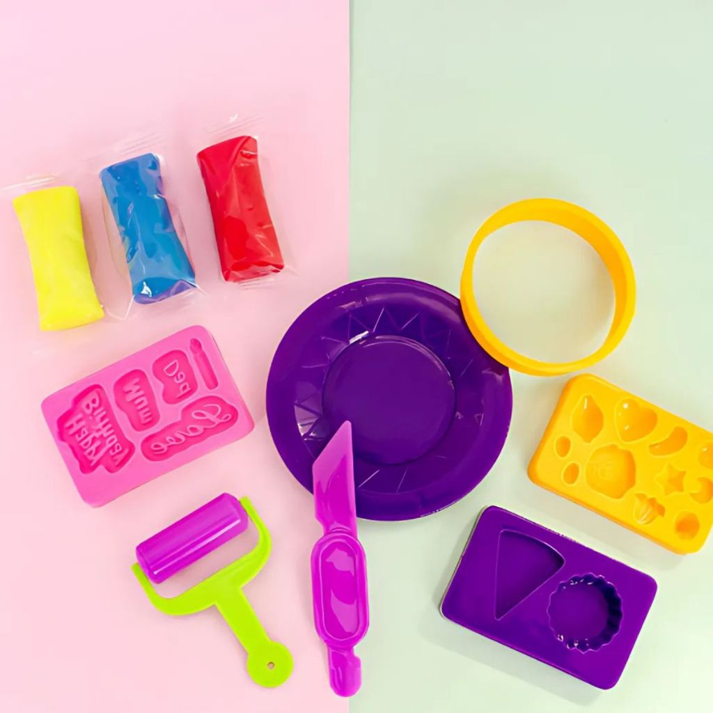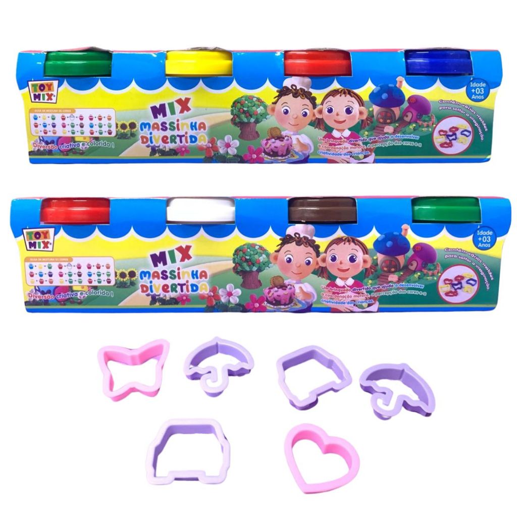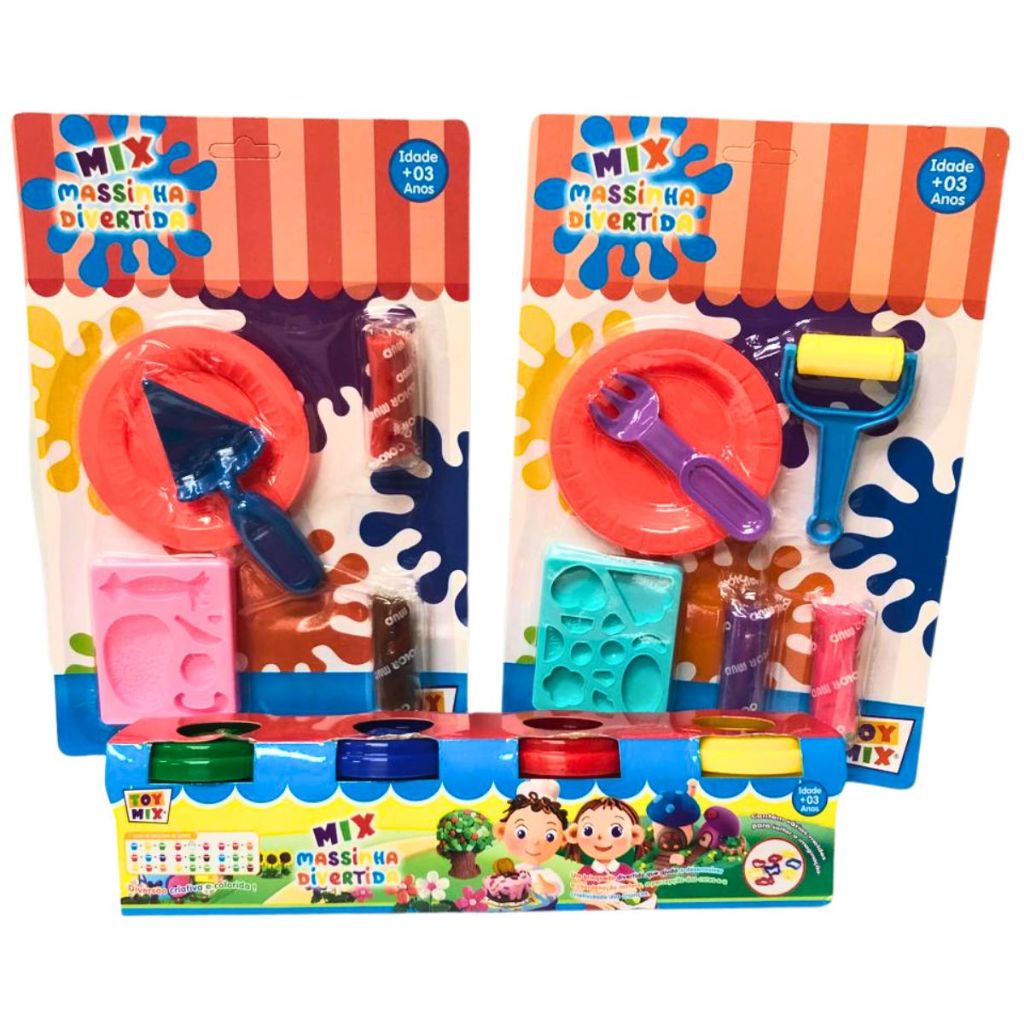 Massinha Divertida Coloridas C/ Molde Pratinhos Rolo para Massinha de Modelar Brinquedo Divertido