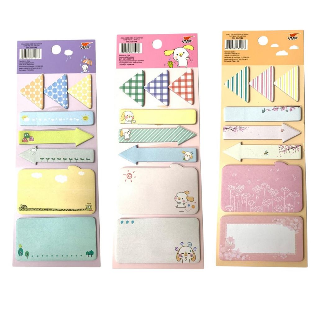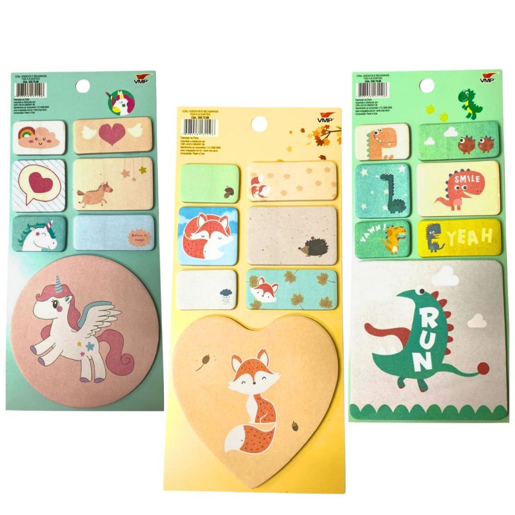 Conjunto Adesivos e Recadinhos Bloco Cute Infantil Escolar Sortidos Papelaria Fofa Presente