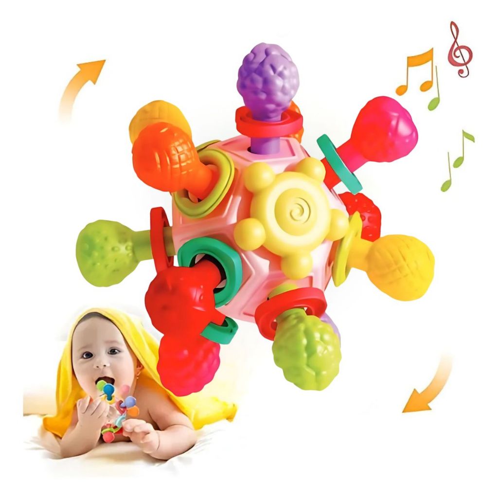 Mordedor Chocalho Bebê Bola Sensorial Massageador Estímulos Coordenação Motora Bolinha