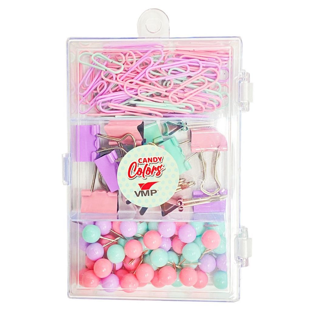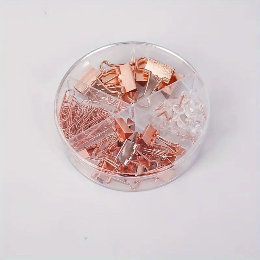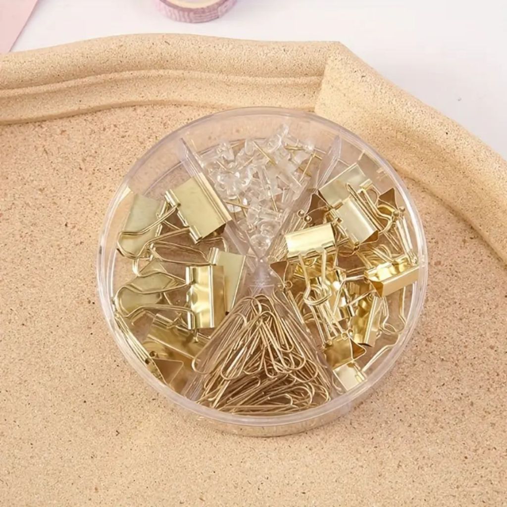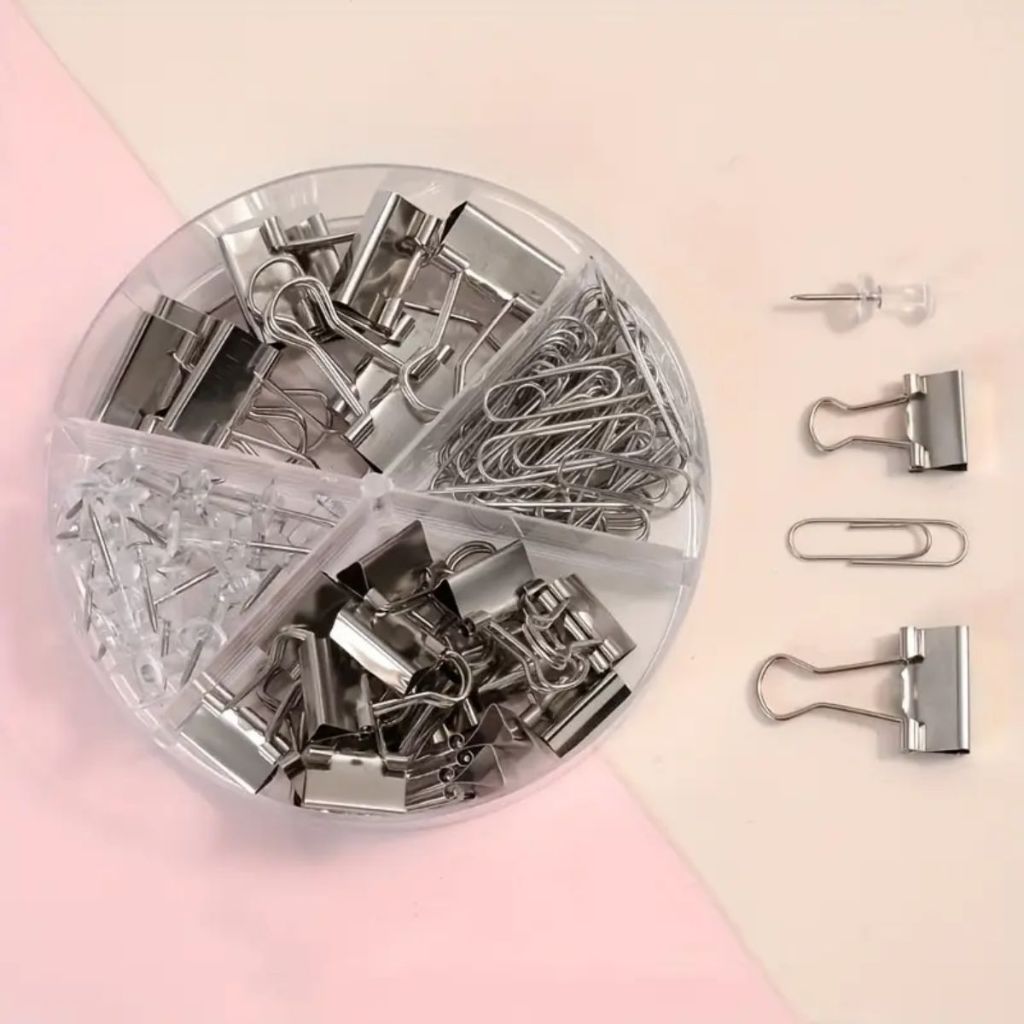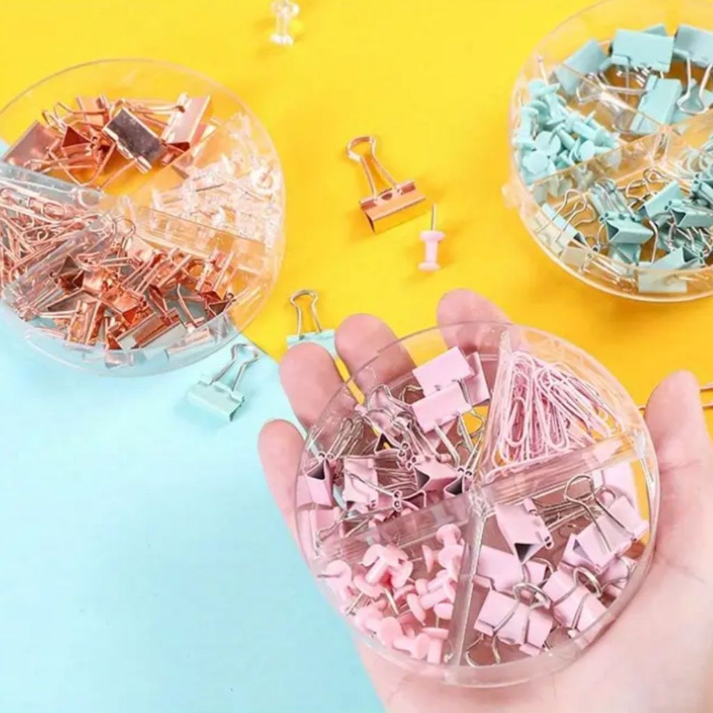 Kit Escritório Clips Alfinete Prendedor Tons Metálicos Kit Office Papelaria Escolar Fofo Grande