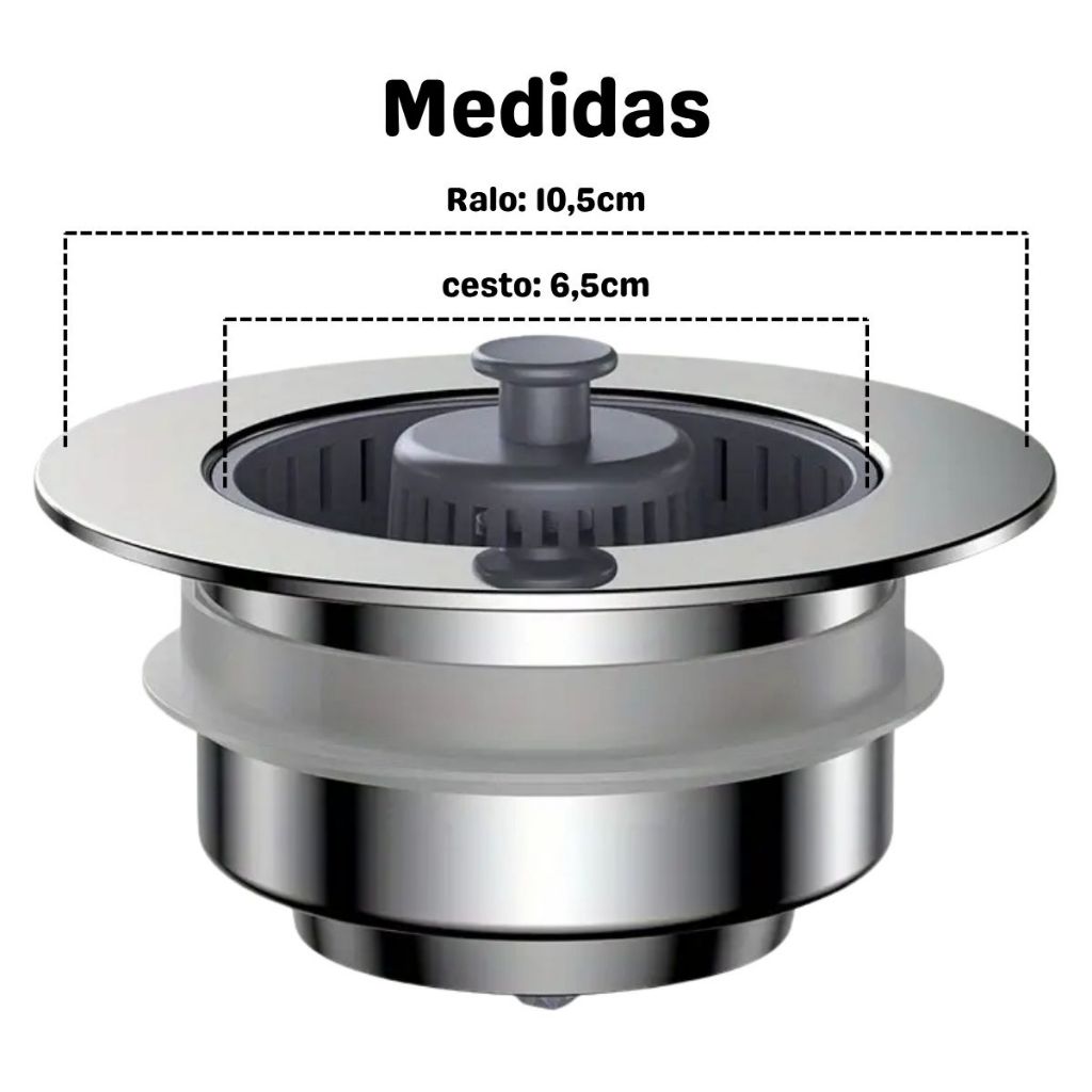 Ralo de Pia de Cozinha em Aço Inox Válvula Coletora de Resíduos Filtrar Restos de Alimentos