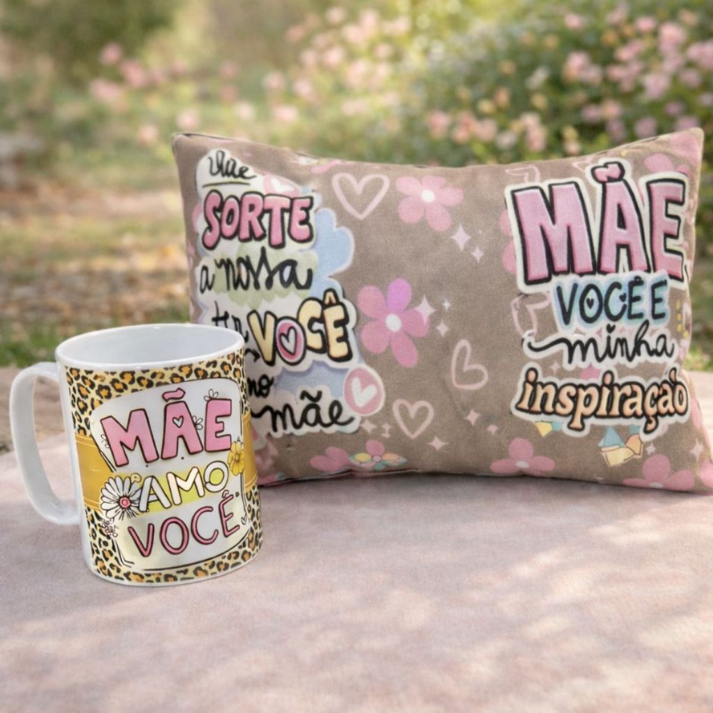 Kit Presente Dia das Mães Almofada + Caneca Várias Estampas Lembrancinha Surpresa Cesta Urso Almofad