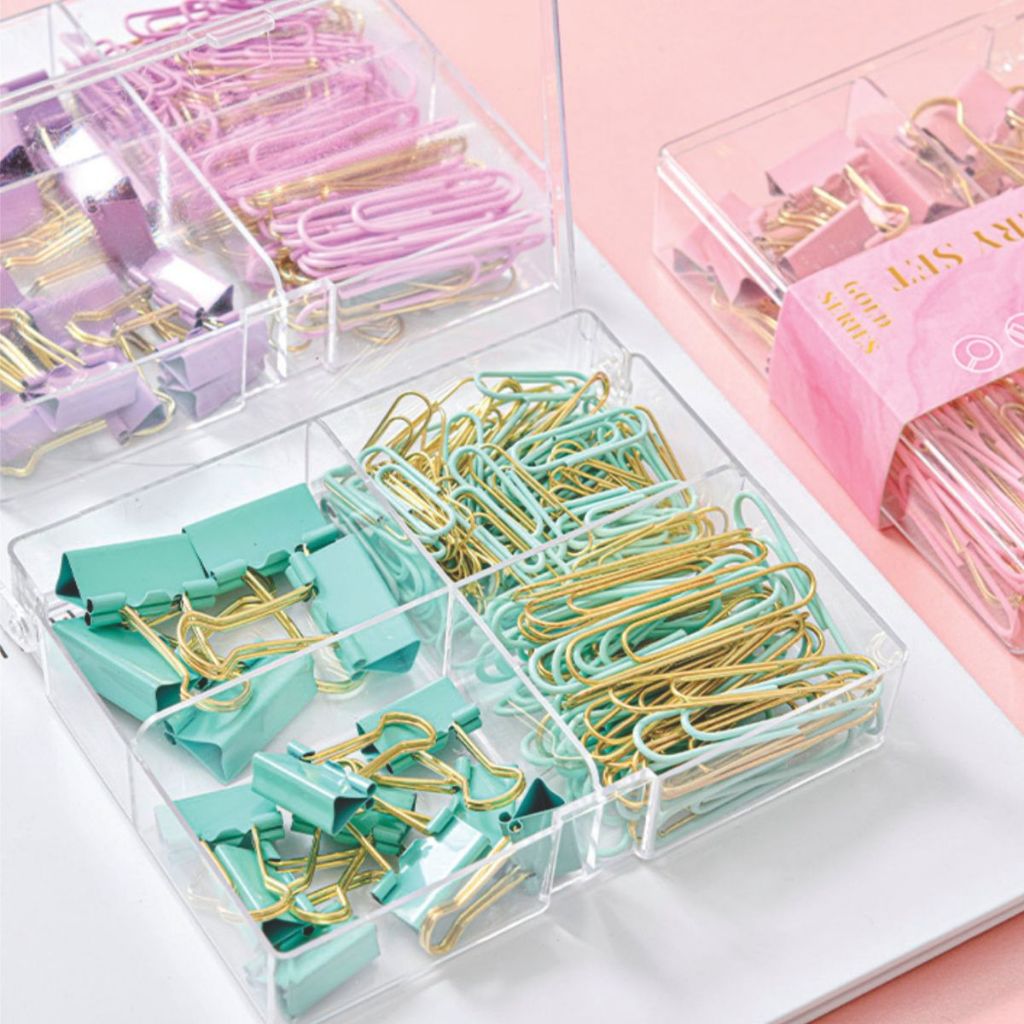 Escritório Office Clips Prendedor Candy Color Kit Office Papelaria Escolar Fofo Tons Pasteis