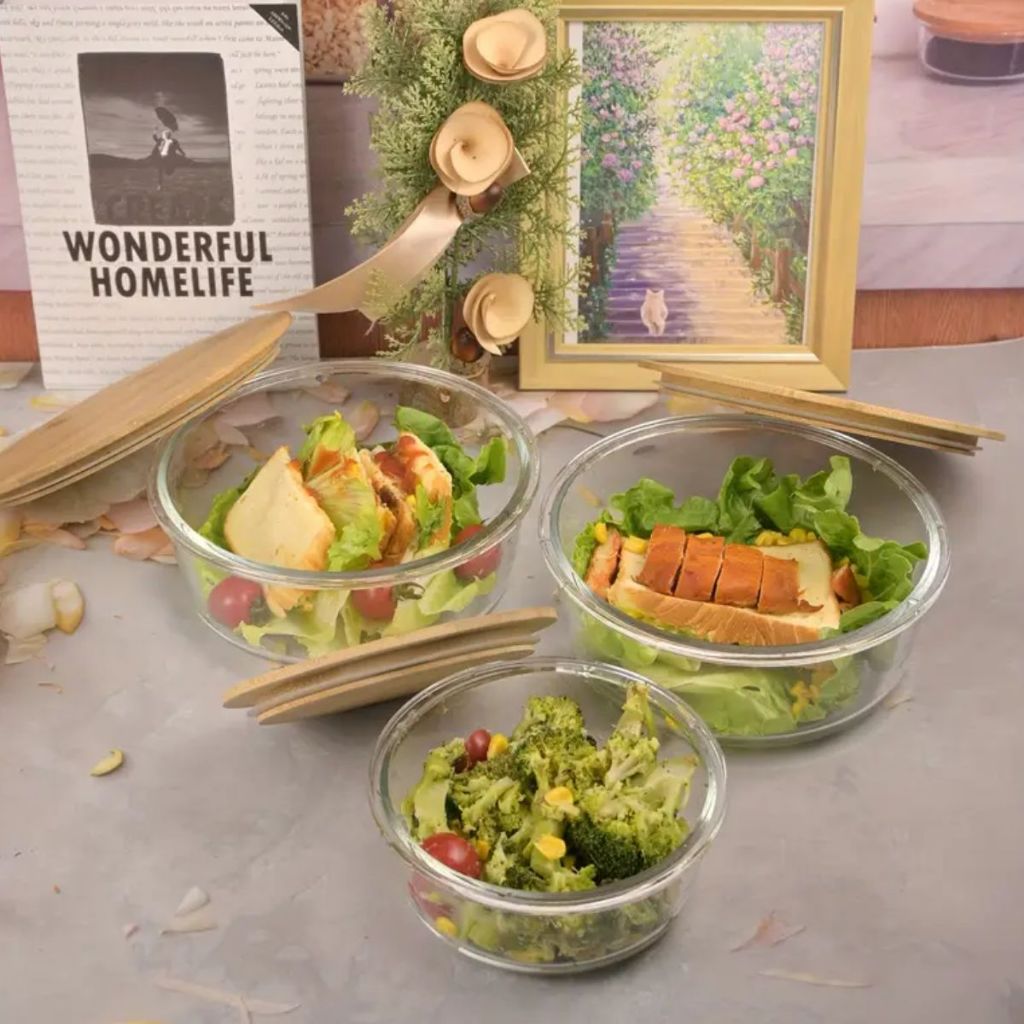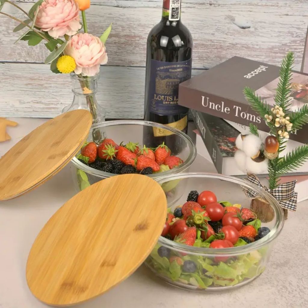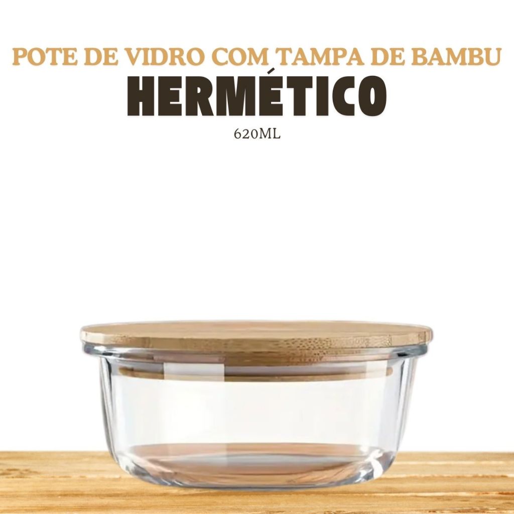 Conjunto Potes Vidro Hermético Redondo Marmita Potes De Vidro Hermético Pote Com Tampa Bambu
