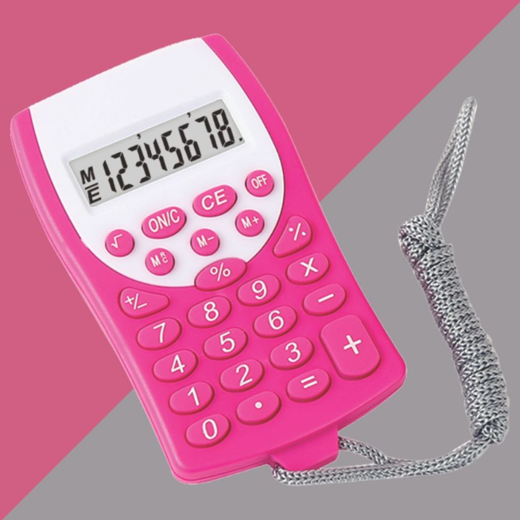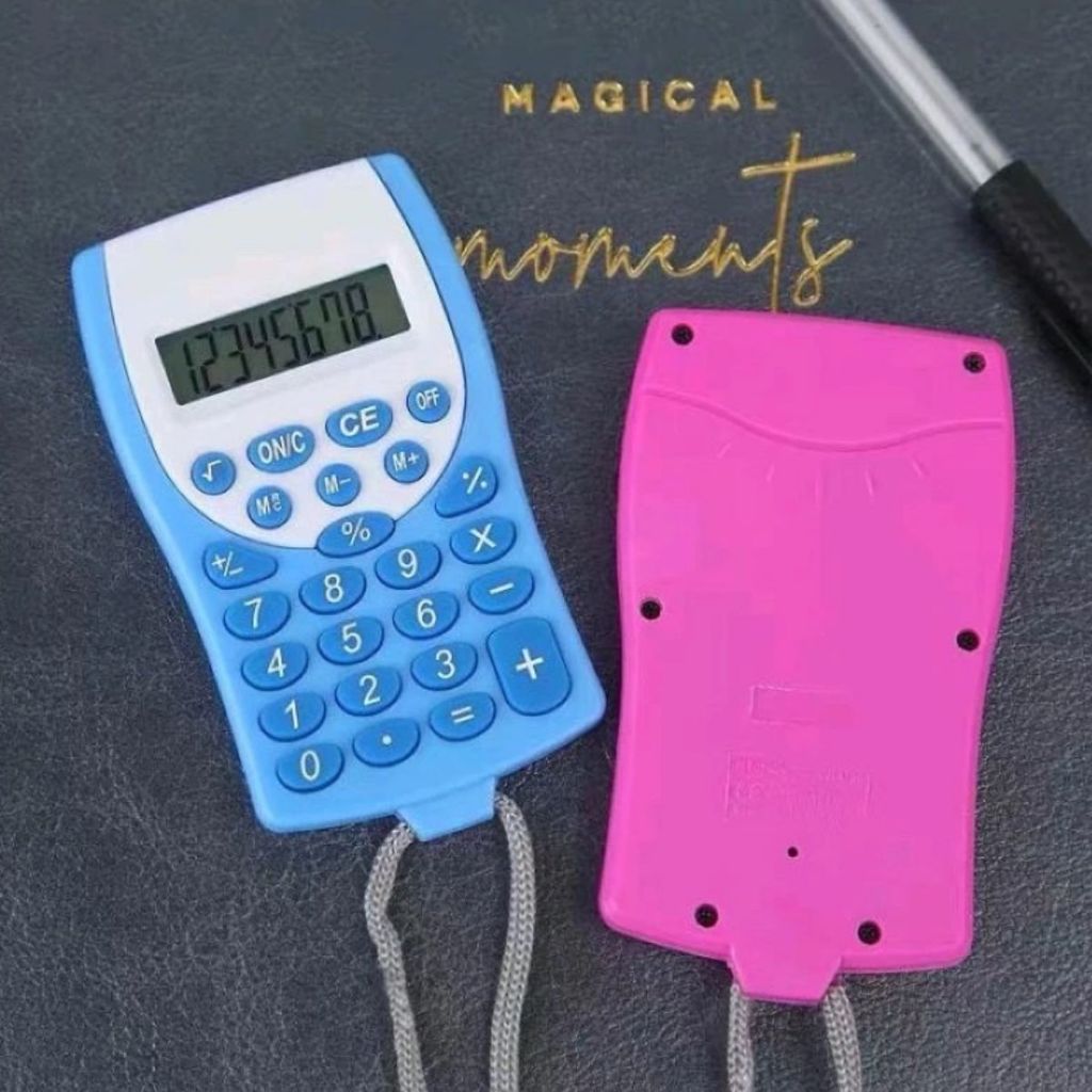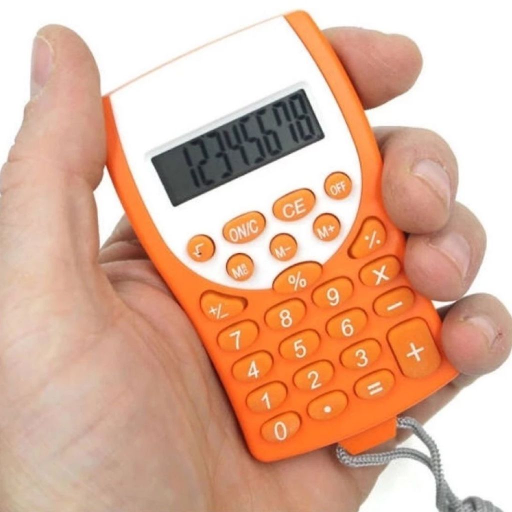 Mini Calculadora De Bolso 8 Dígitos com Cordão Portátil Neon Escritório Finanças