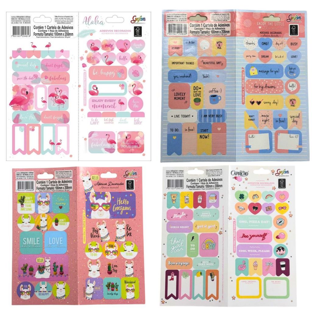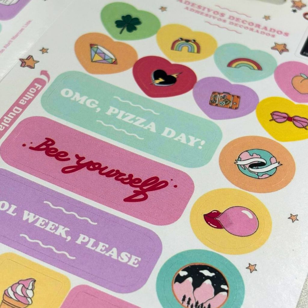 Conjunto 600 Adesivos 40 Folhas Adesivo Menina Tilibra Pool Party Anos 2000 Capricho Flamingo Verão