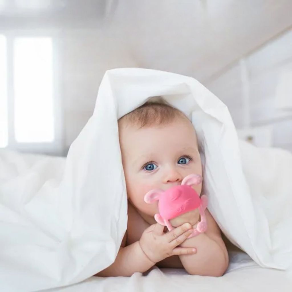Luvinha Coelho Silicone Mordedor de Bebe Luva Dentição Infantil Luva Massageador de Dente Bebes