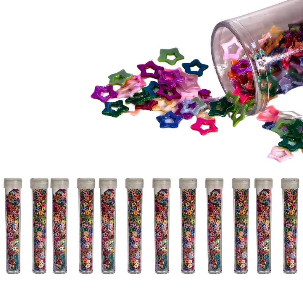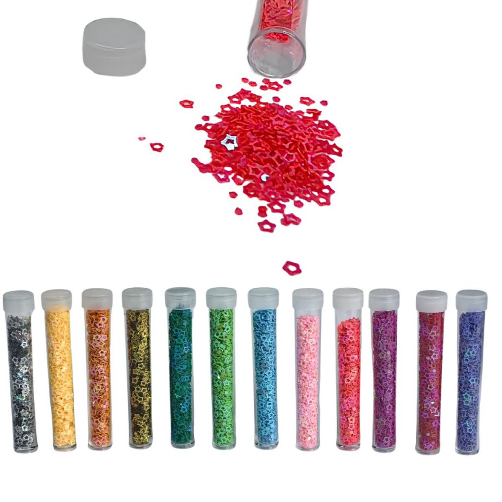 Tubos Glitter Miçanga Decoração Artesanato Miçanga Escolar Glitter Estrela Flor 8 gramas