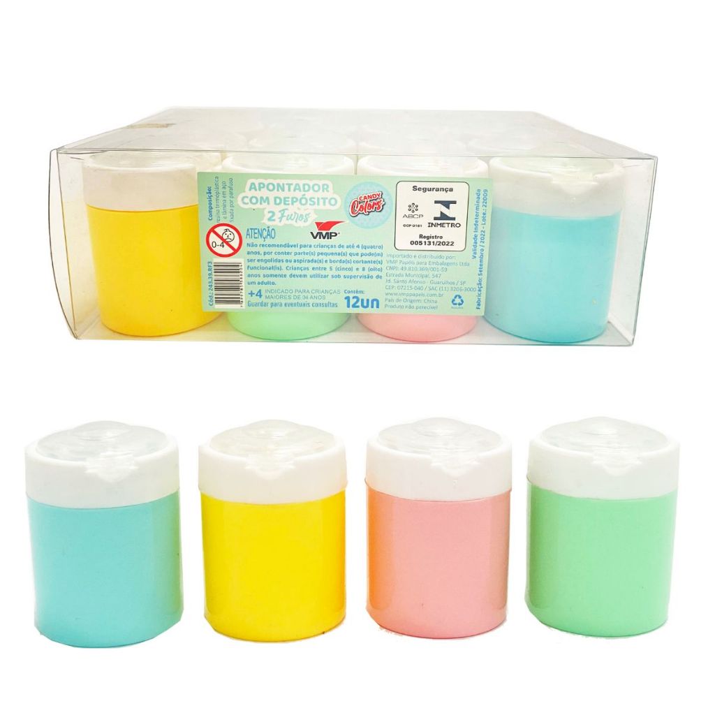 Apontador com Depósito Cores Candy Claras Apontadores Clean 2 Furos Lápis Jumbo Apontador Atacado