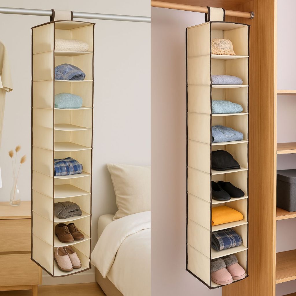 Organizador de Guarda Roupa Suspenso Dobrável Multiuso Para Roupas Tênis Sapatos Minimalista