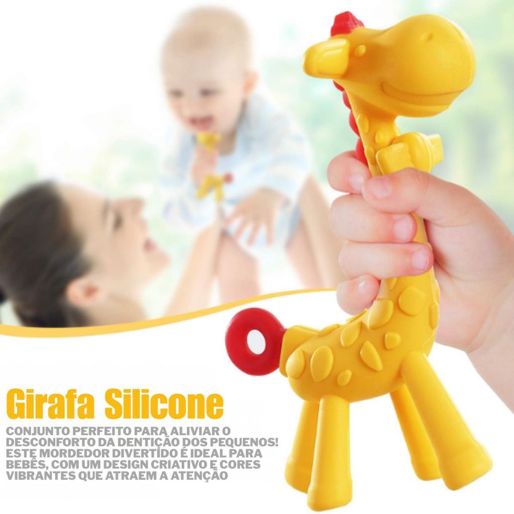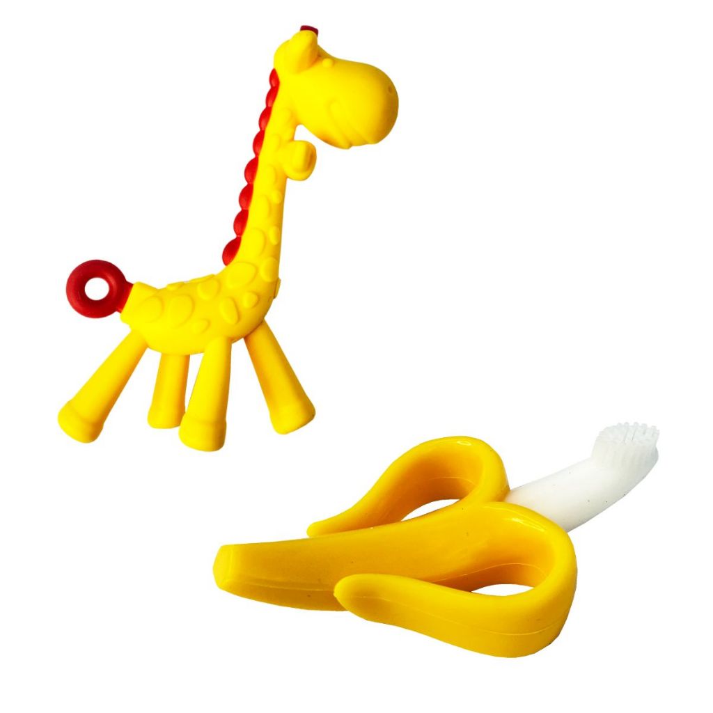 Mordedor Silicone Escovinha Dentição Banana e Girafa Brinquedos para Bebes Massageador Animais