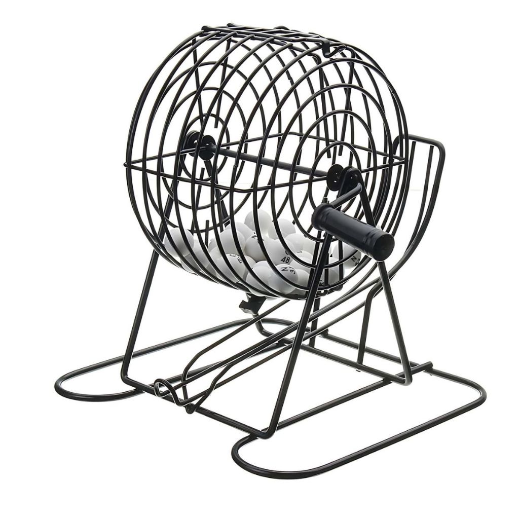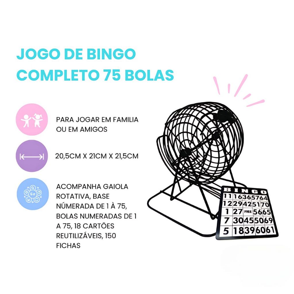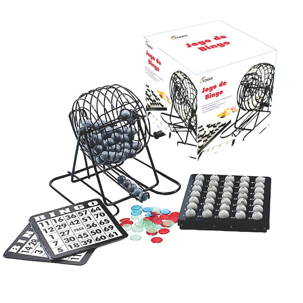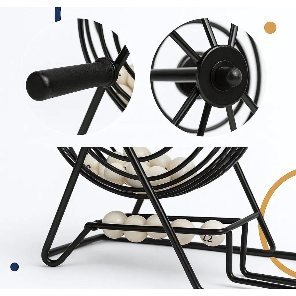 Bingo Completo com 75 Bolas Numeradas Gaiola Rotativa + Base Numerada até 75 Portátil