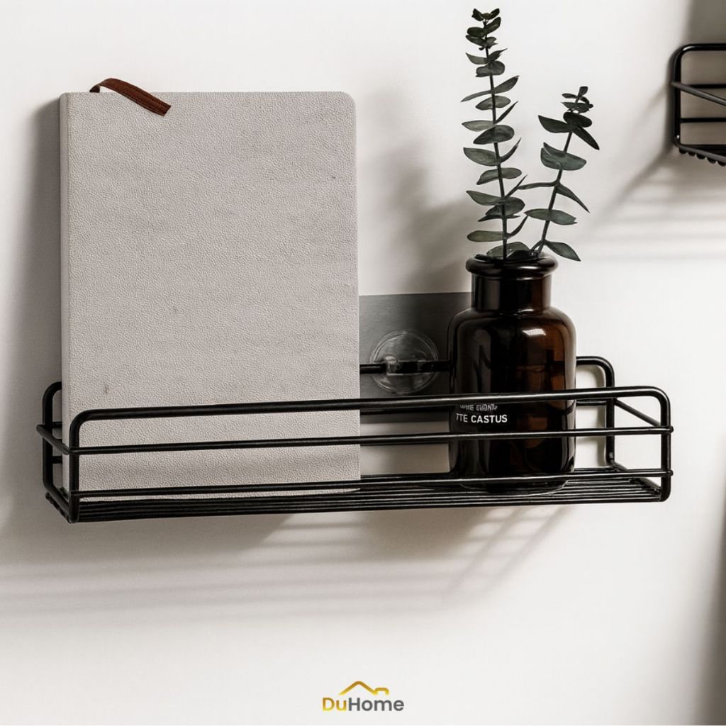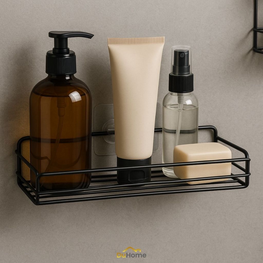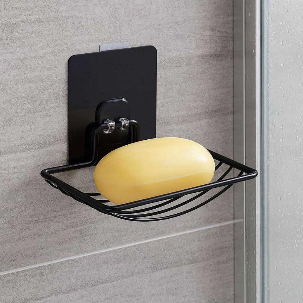Suporte para Banheiro + Saboneteira Preta Inox Moderno Organizador Parede Lavanderia Adesivo