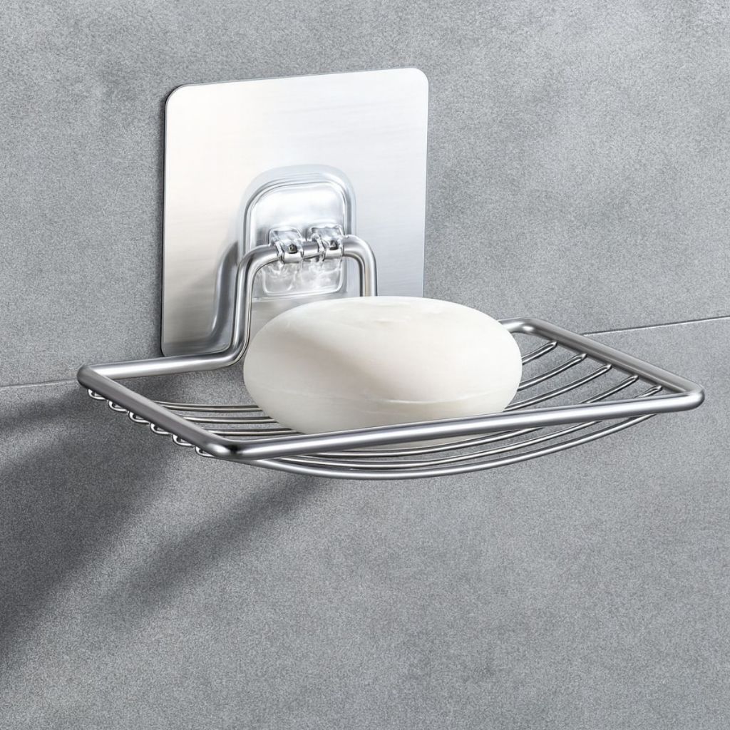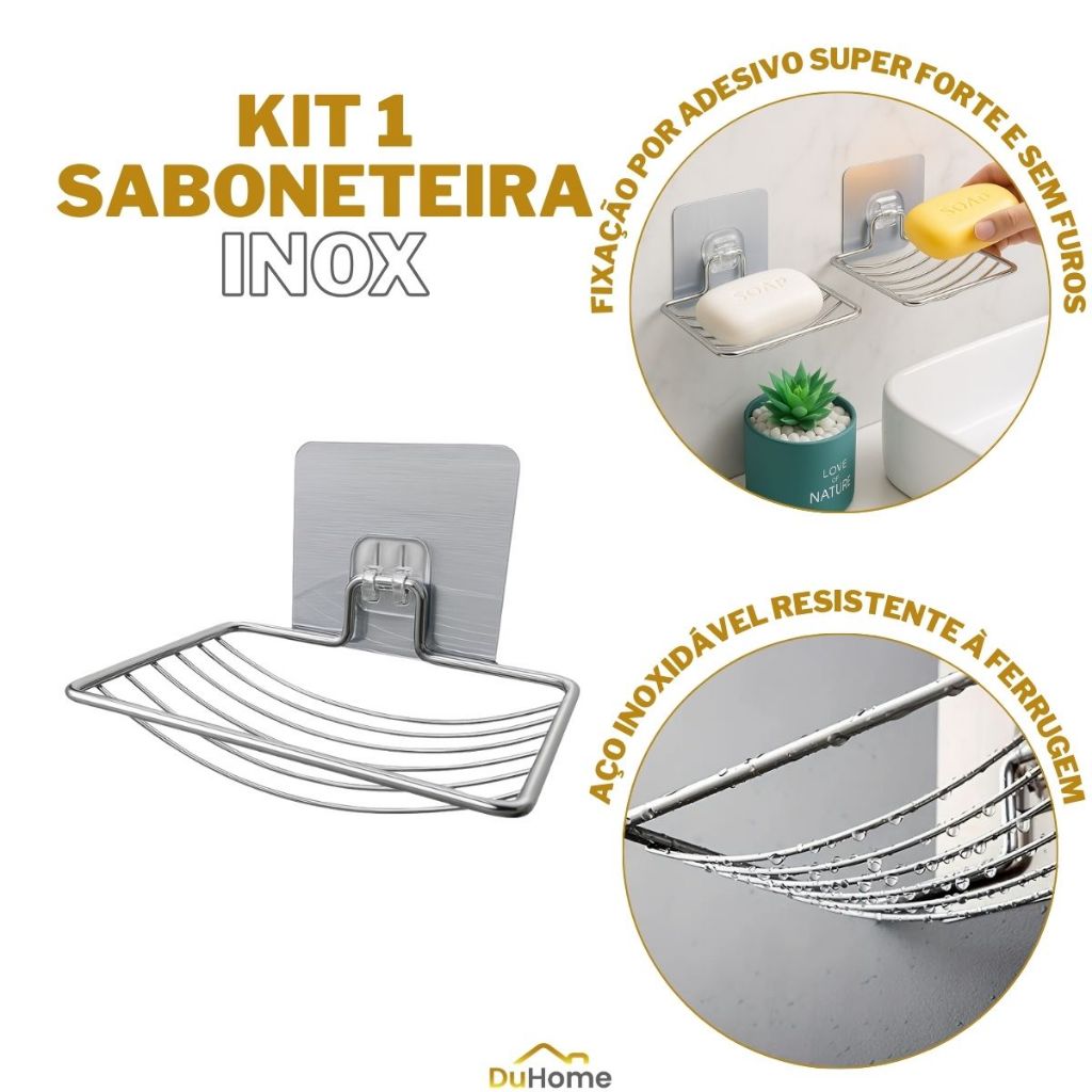 Saboneteira de Inox com Adesivo Sem Furo Fixação Forte Resistente Preta Prata