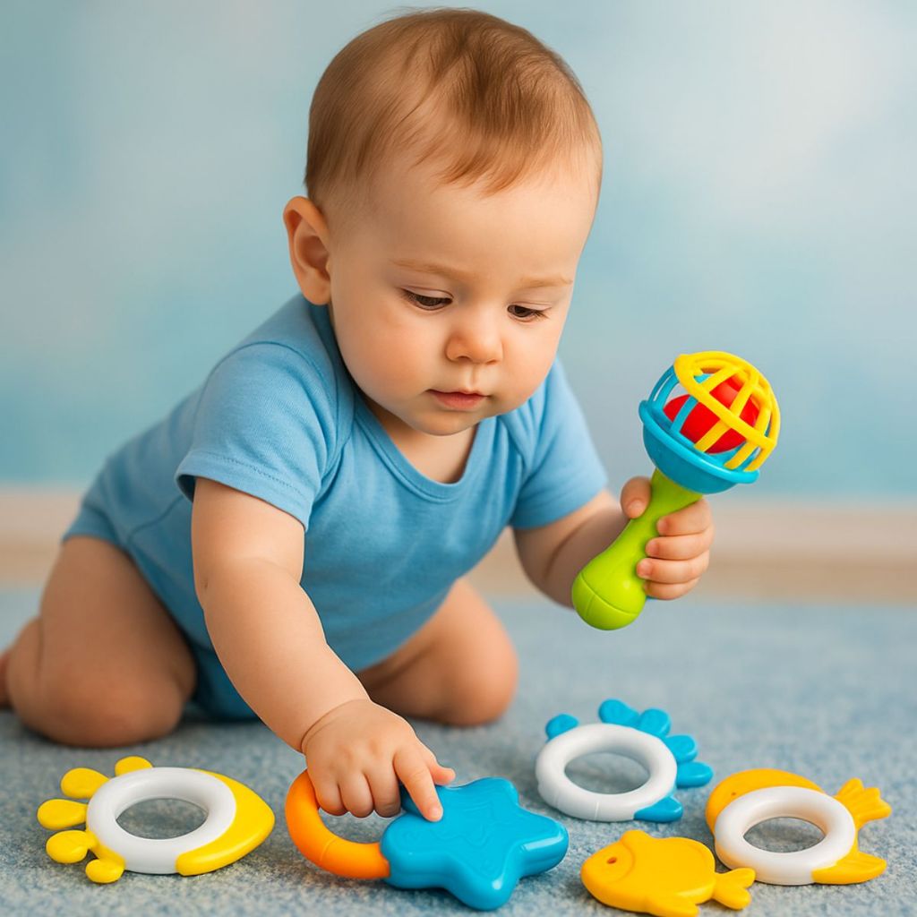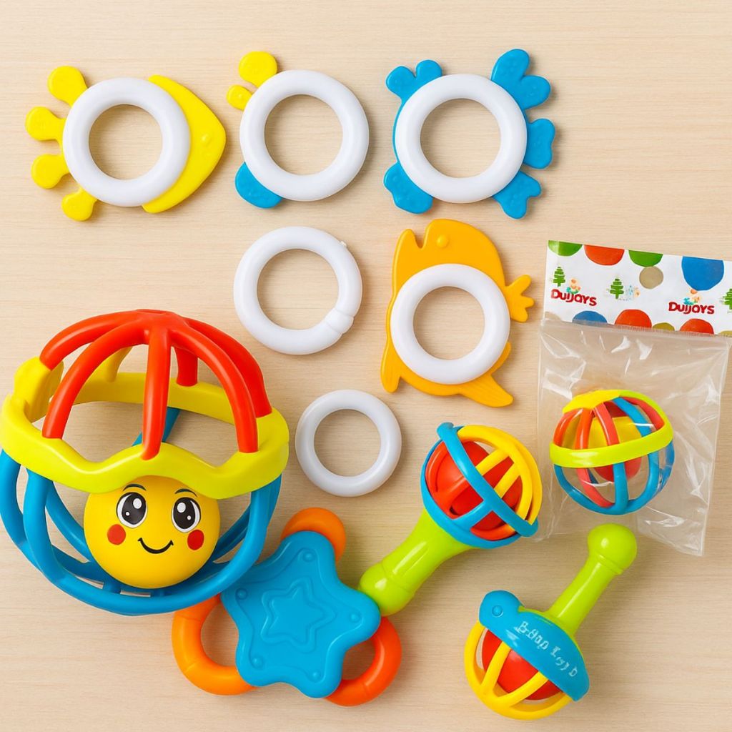 Chocalhos Sensoriais Silicone 7pcs Bebê Desenvolvimento Macio Divertido Sons Bolinha Dutoys