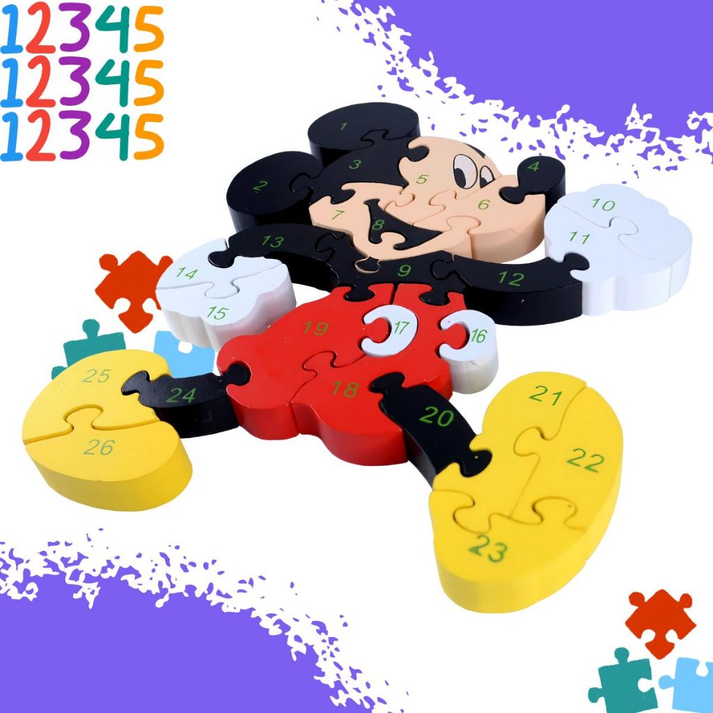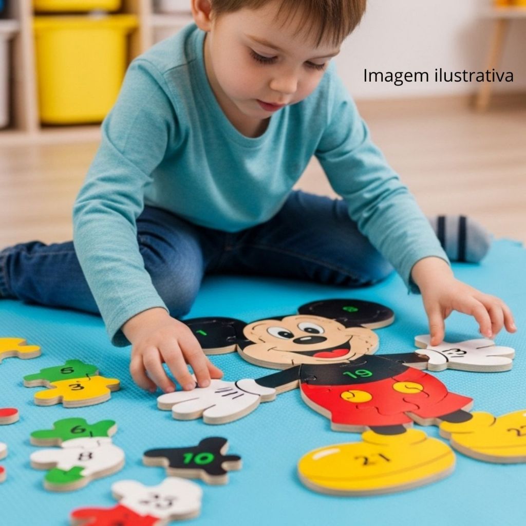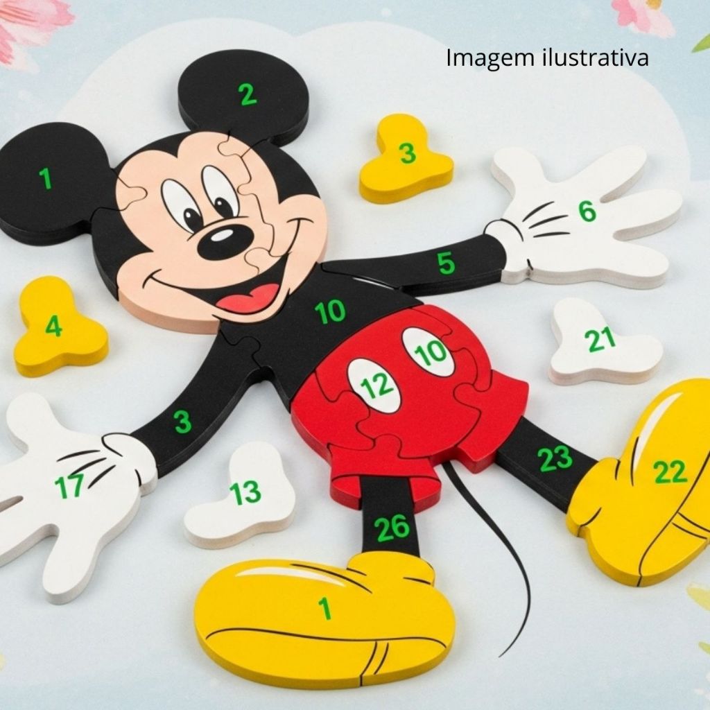 Quebra Cabeça Disney Mickey Menino Menina Jogos Brinquedo 3D Alfanumérico 26pç MDF