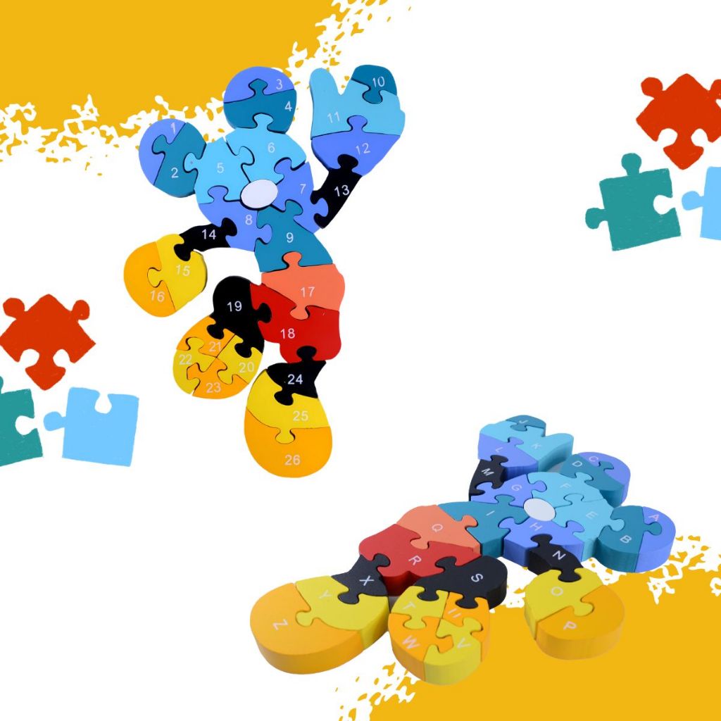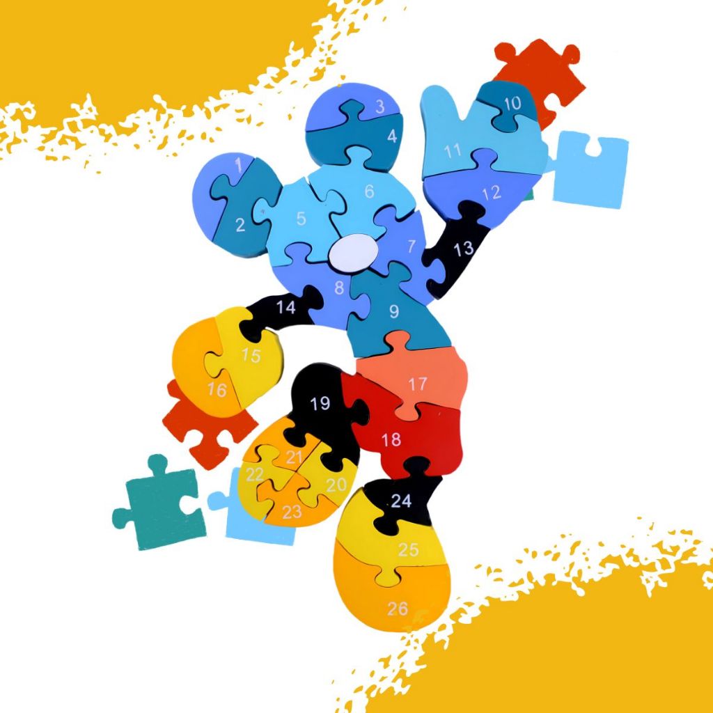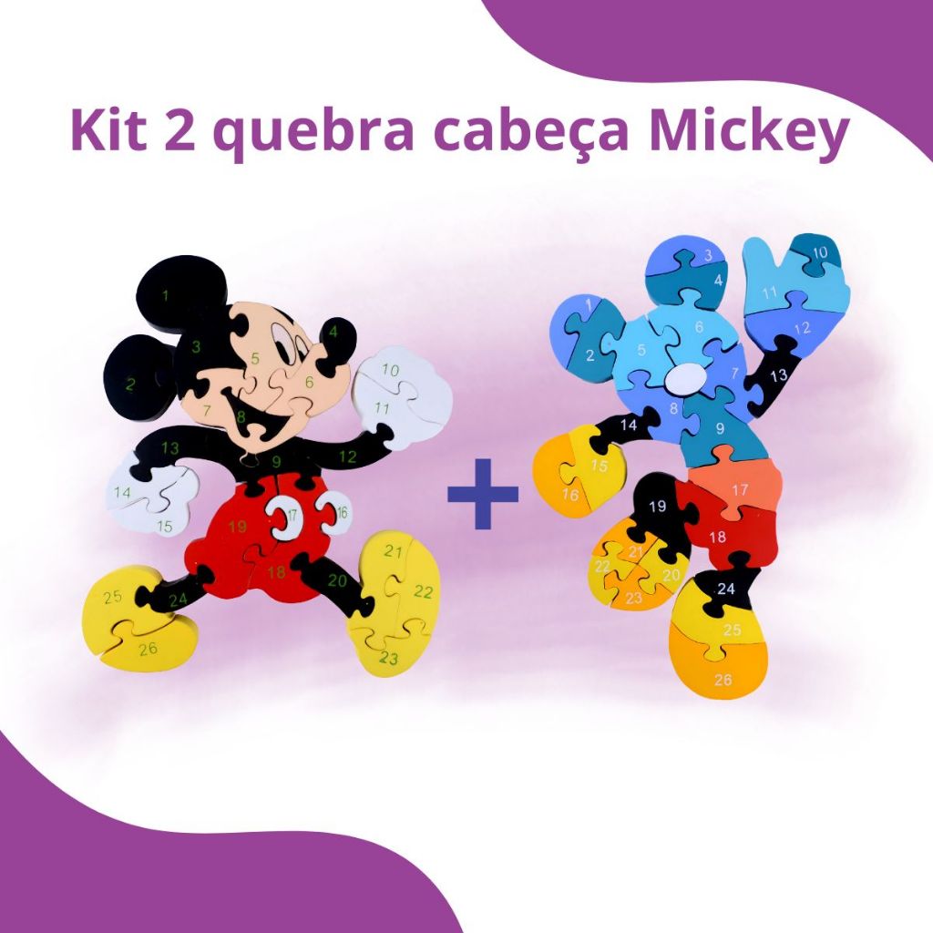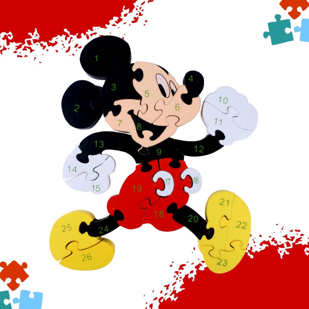 Quebra Cabeça Disney Mickey Menino Menina Jogos Brinquedo 3D Alfanumérico 26pç MDF