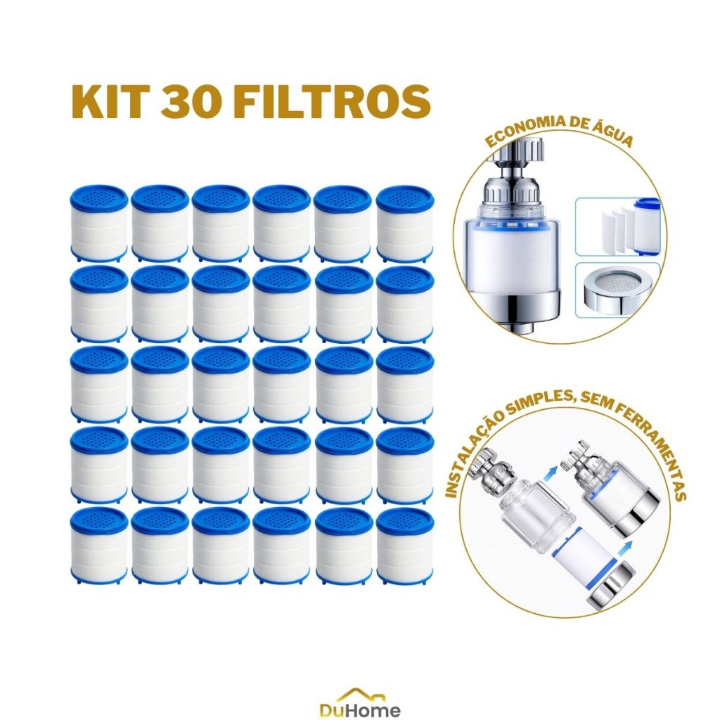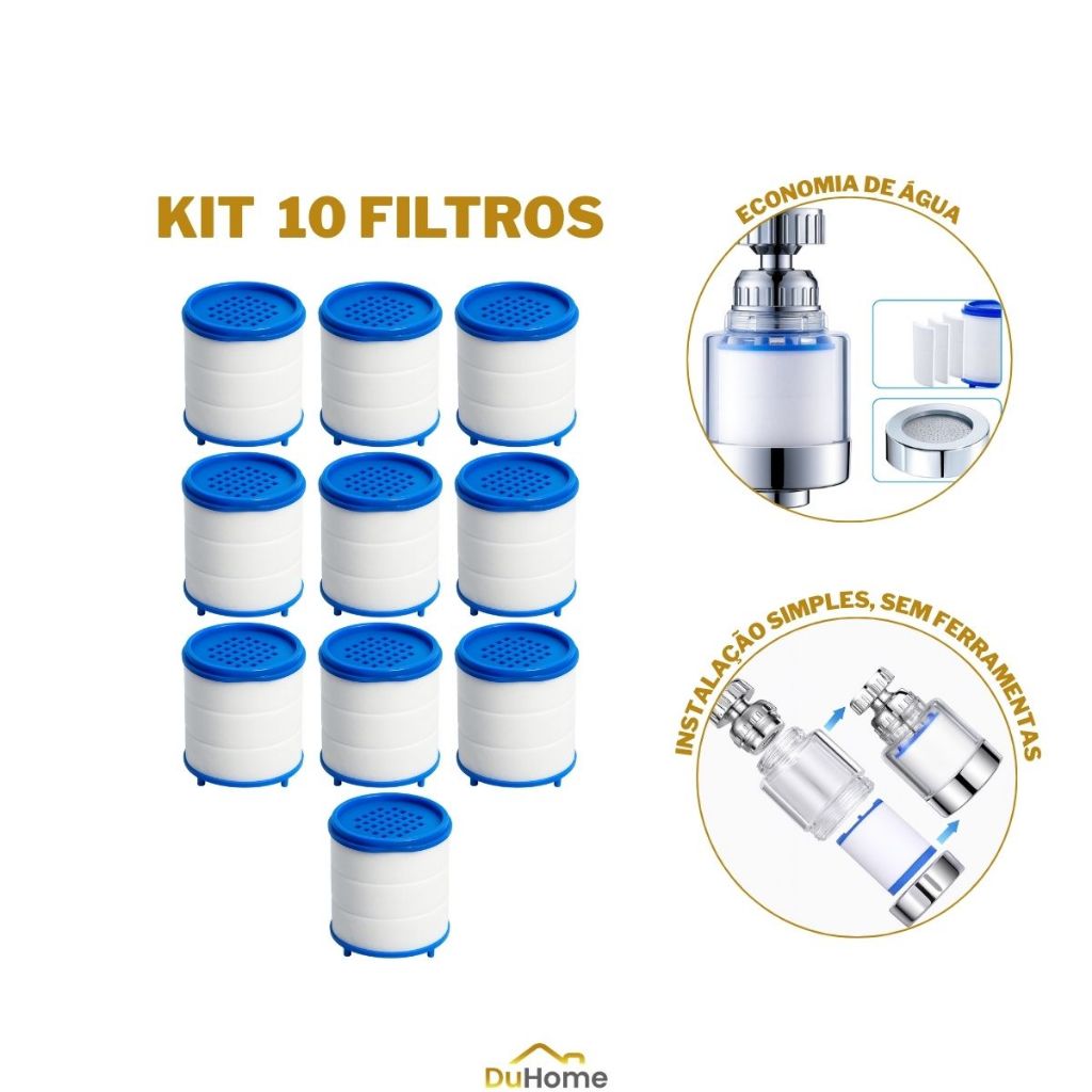 Kit Filtros Universal Torneira Uso Fácil Refil Filtro Torneira Interno Adaptador Filtragem Agua