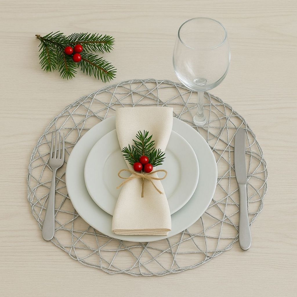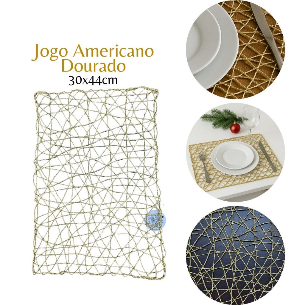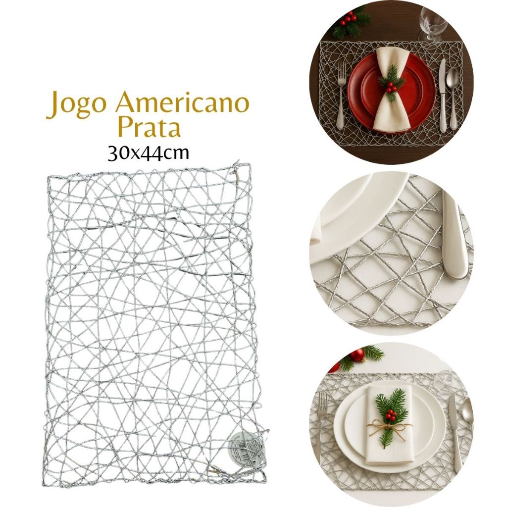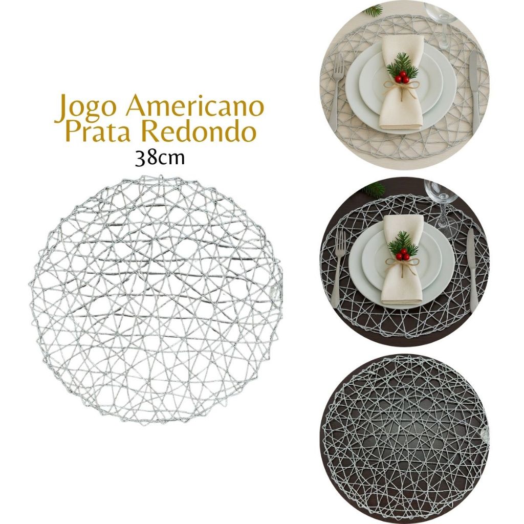 Jogo Americano Natalino Trançado 38cm Redondo Dourado Prata Vermelho Natal Elegante Luxo VMP