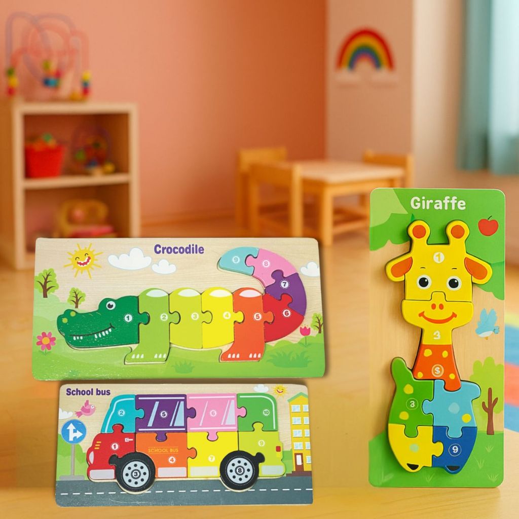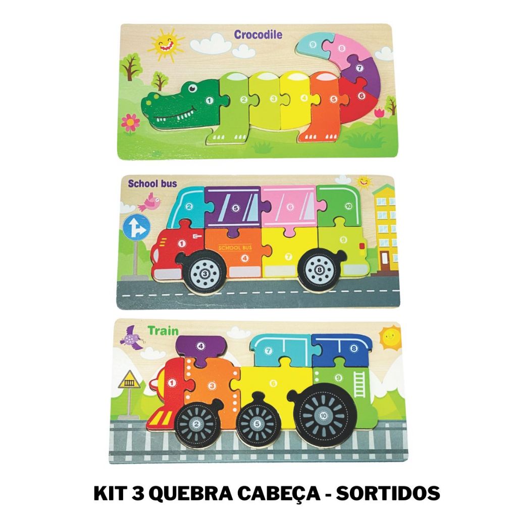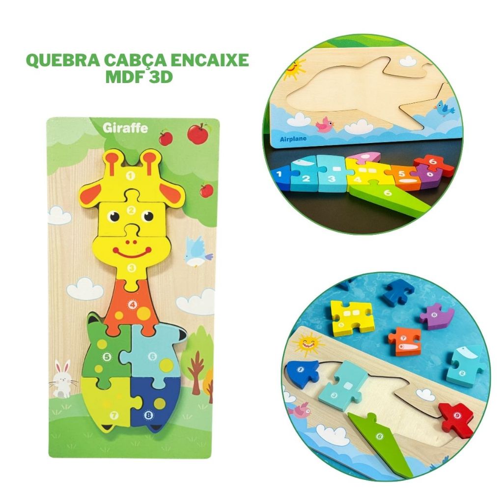 Quebra-Cabeça MDF 3D Grande Numérico Inglês Brinquedo Divertido Encaixe Montessori Transporte
