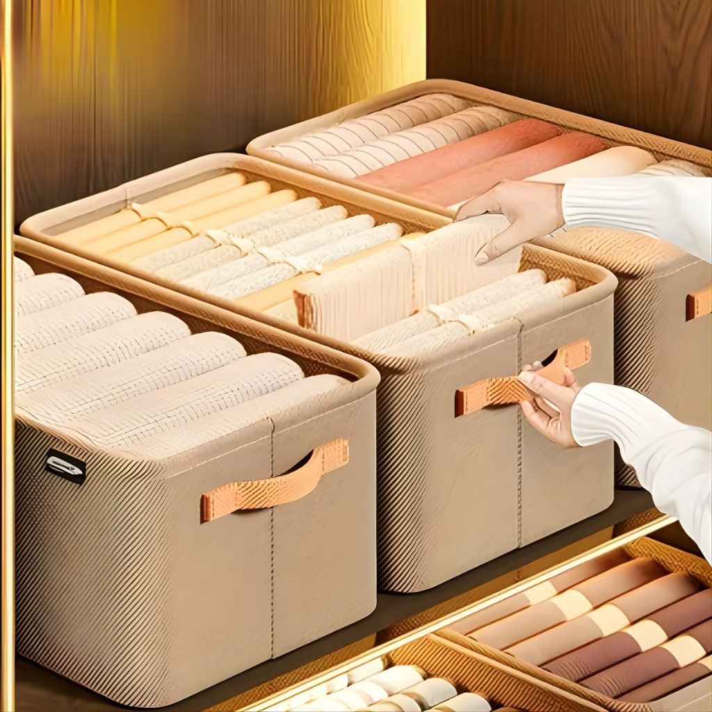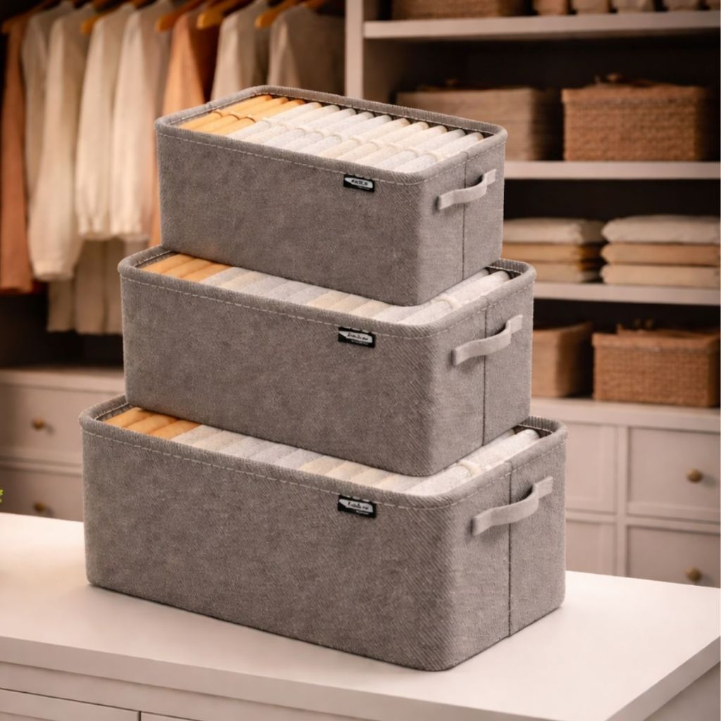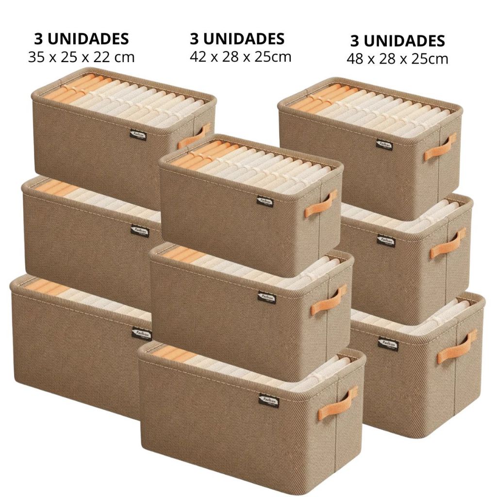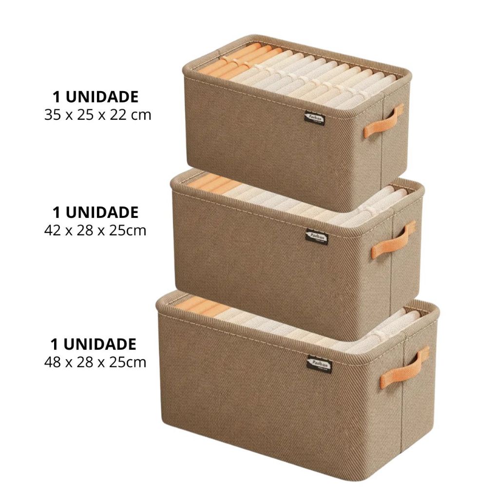 Conjunto Caixas Organização Casa Guarda Roupa Tecido com Alça Desmontável Organização Limpeza Duhome