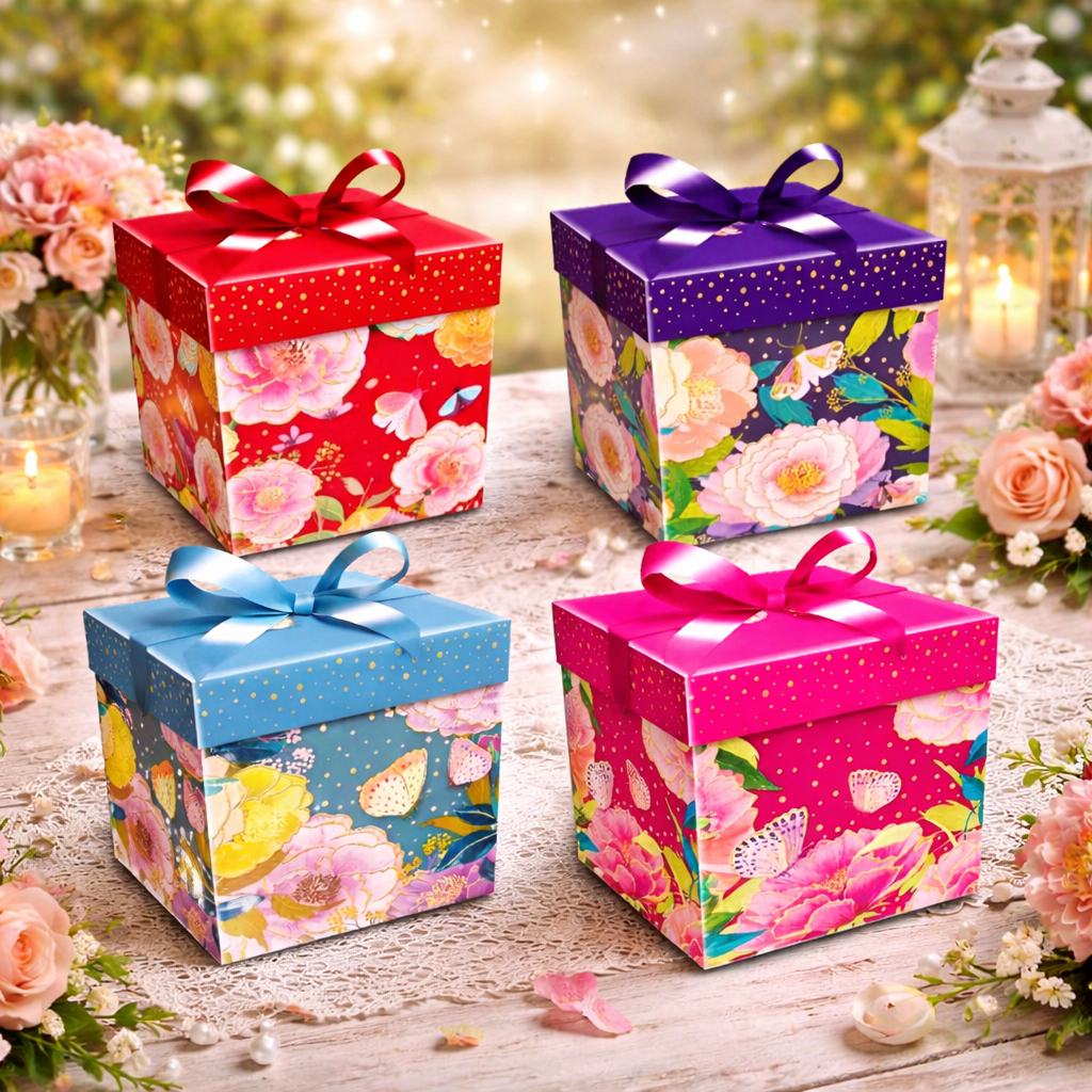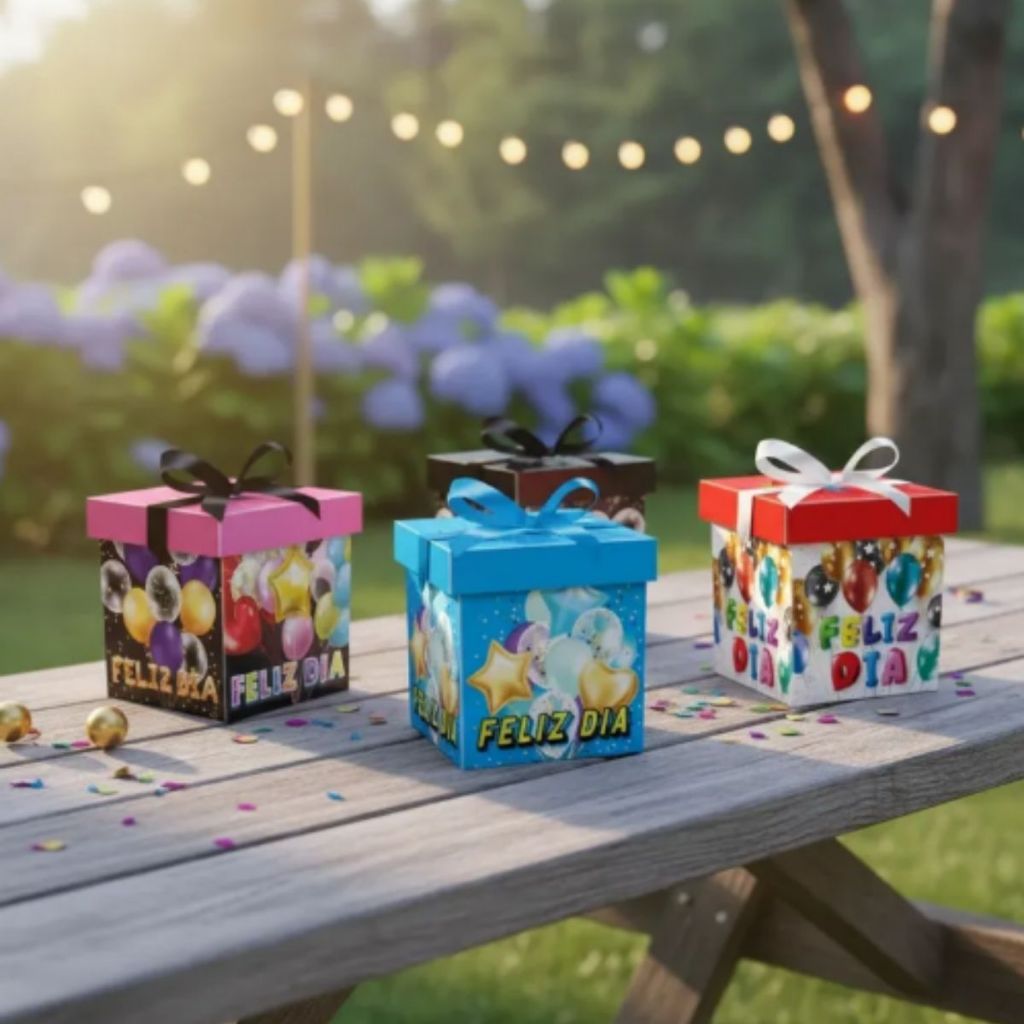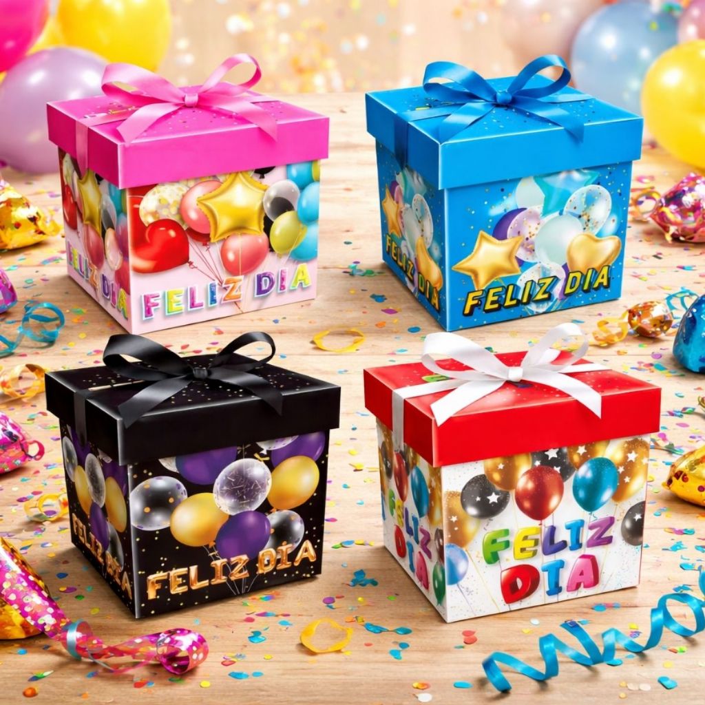 01 Caixa De Presente Com Fita 30cm Festa Aniversário Lembrancinha Caixa Desmontável Variadas