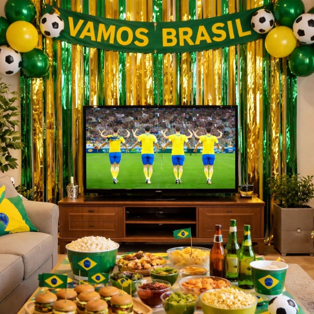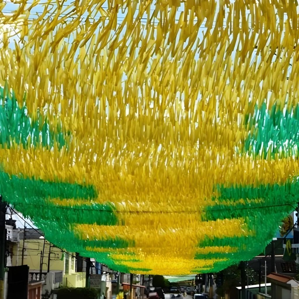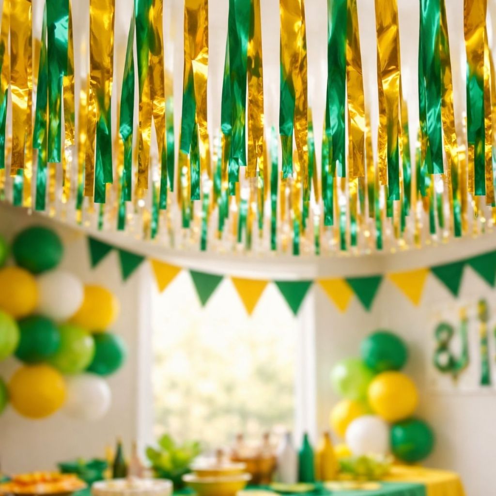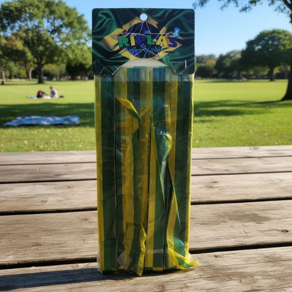 Fita Decorativa Copa do Brasil Metálica Plástico Varal De Fitas Metalizadas Decoração Festa