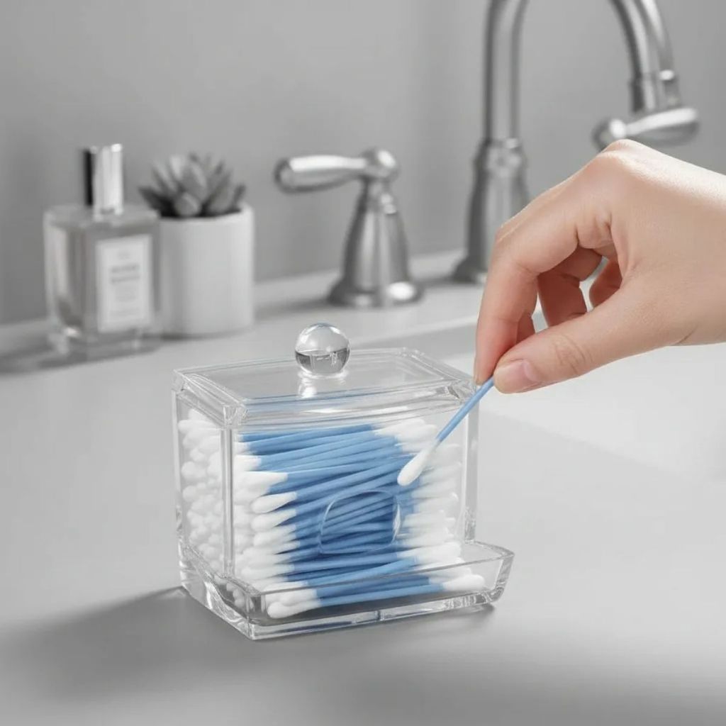 Conjunto Porta Cotonete Porta Algodão Acrílico Transparente Organizador Compacto Banheiro DUHOME