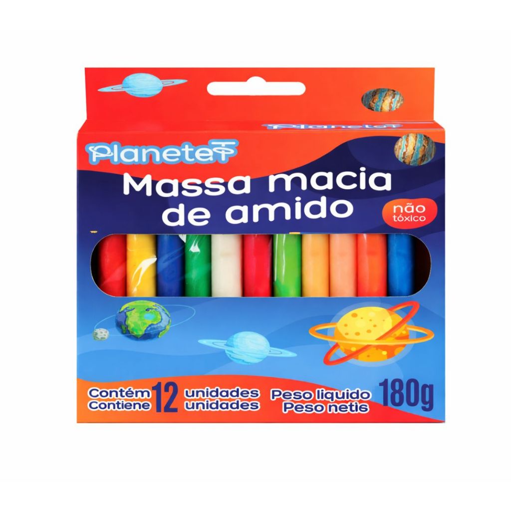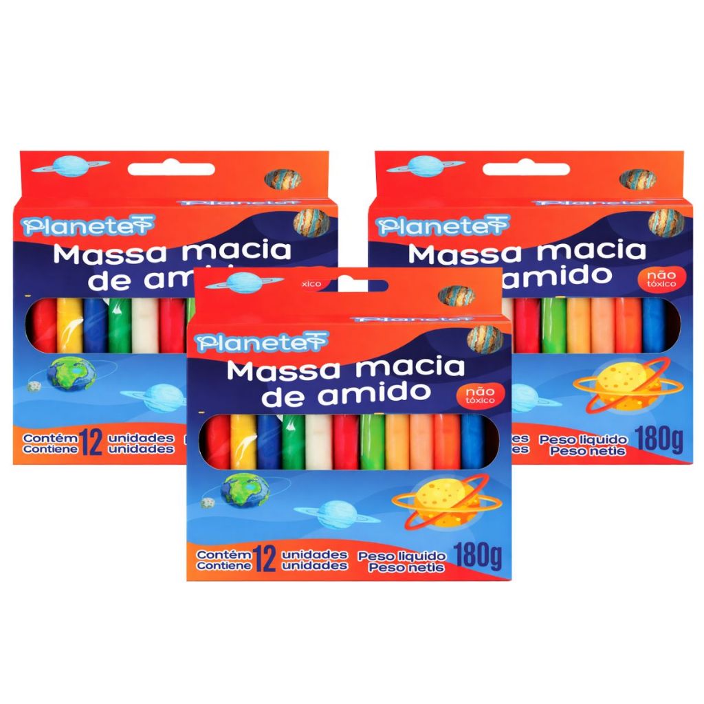 Massinhas de Modelar 12 Cores 180g Colorida Material Escolar Massa de Amido Escolar Arte