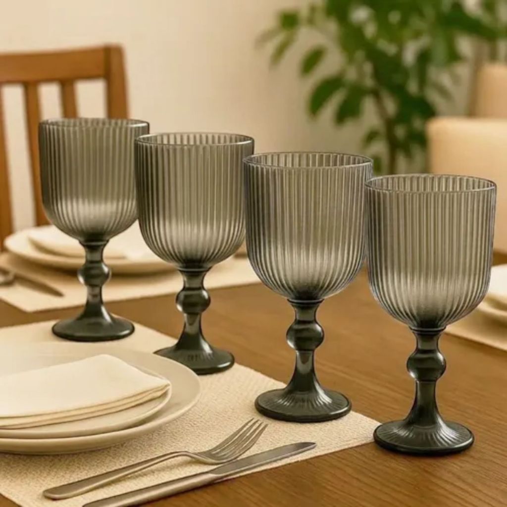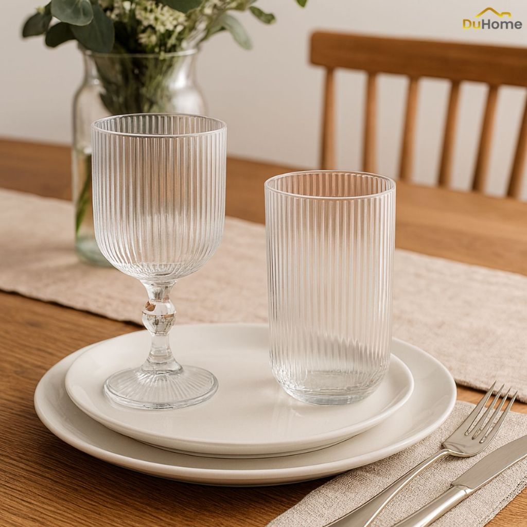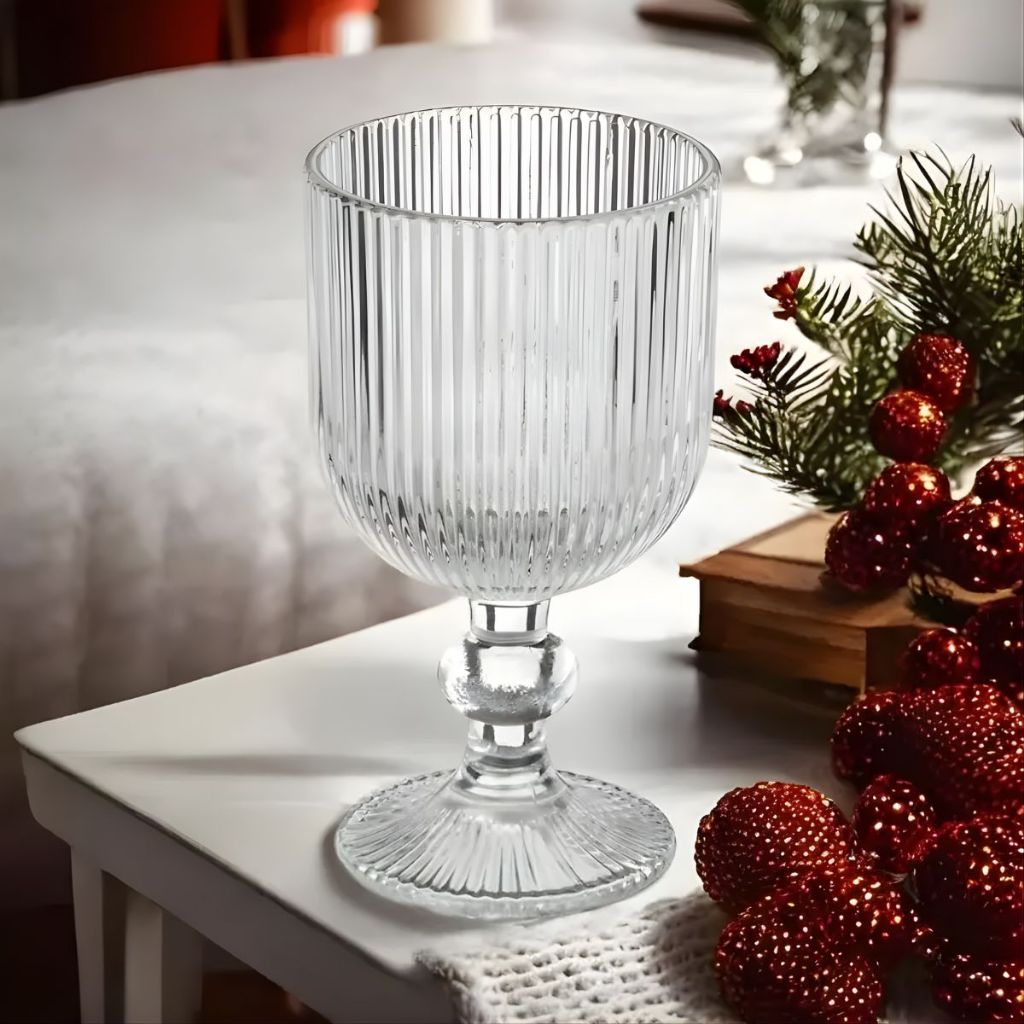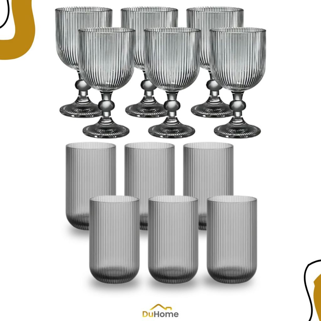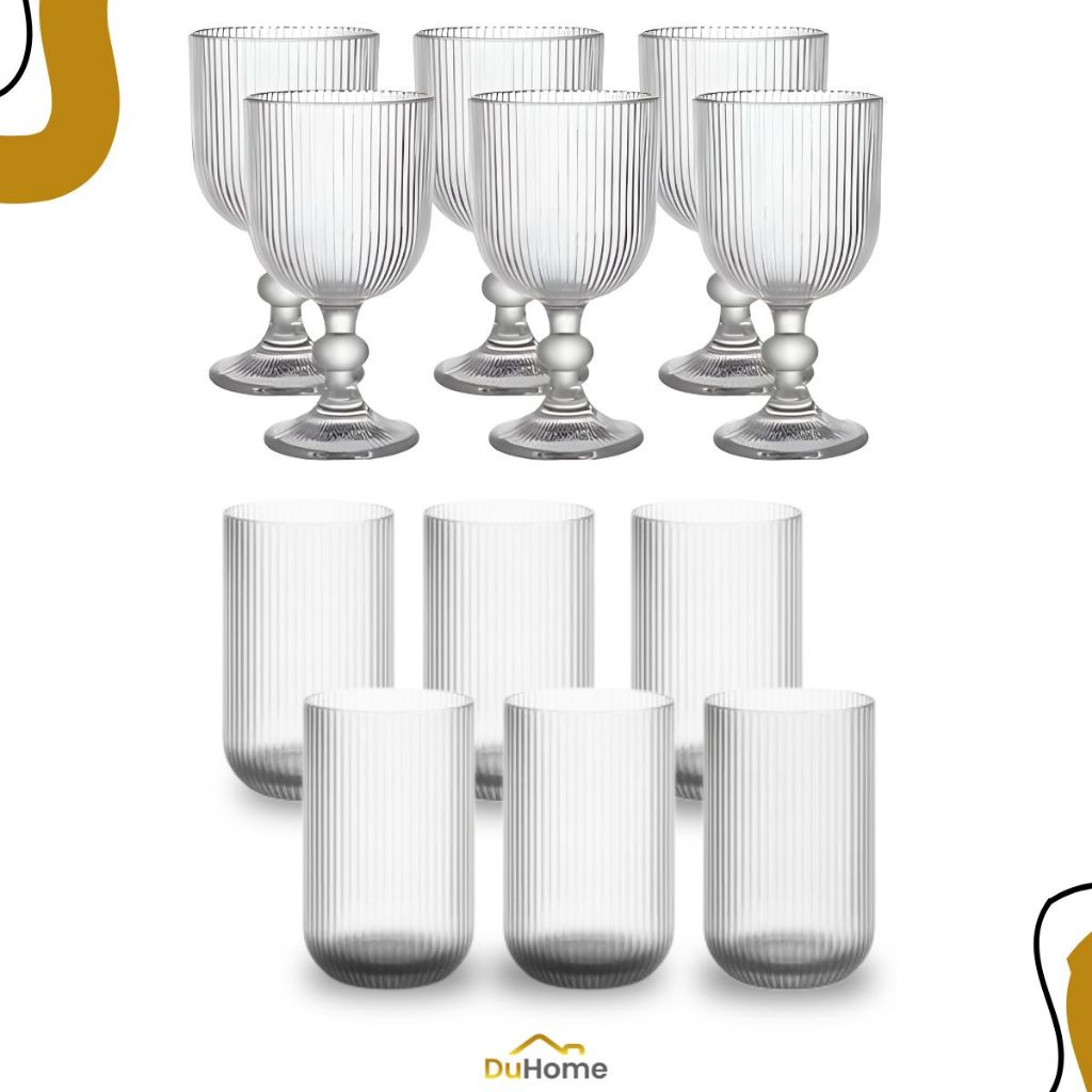 Conjunto 12 Peças Copo + Taça de Vidro Canelado Grande Copo 400ml Mesa Posta Vidro Canelado Duhome