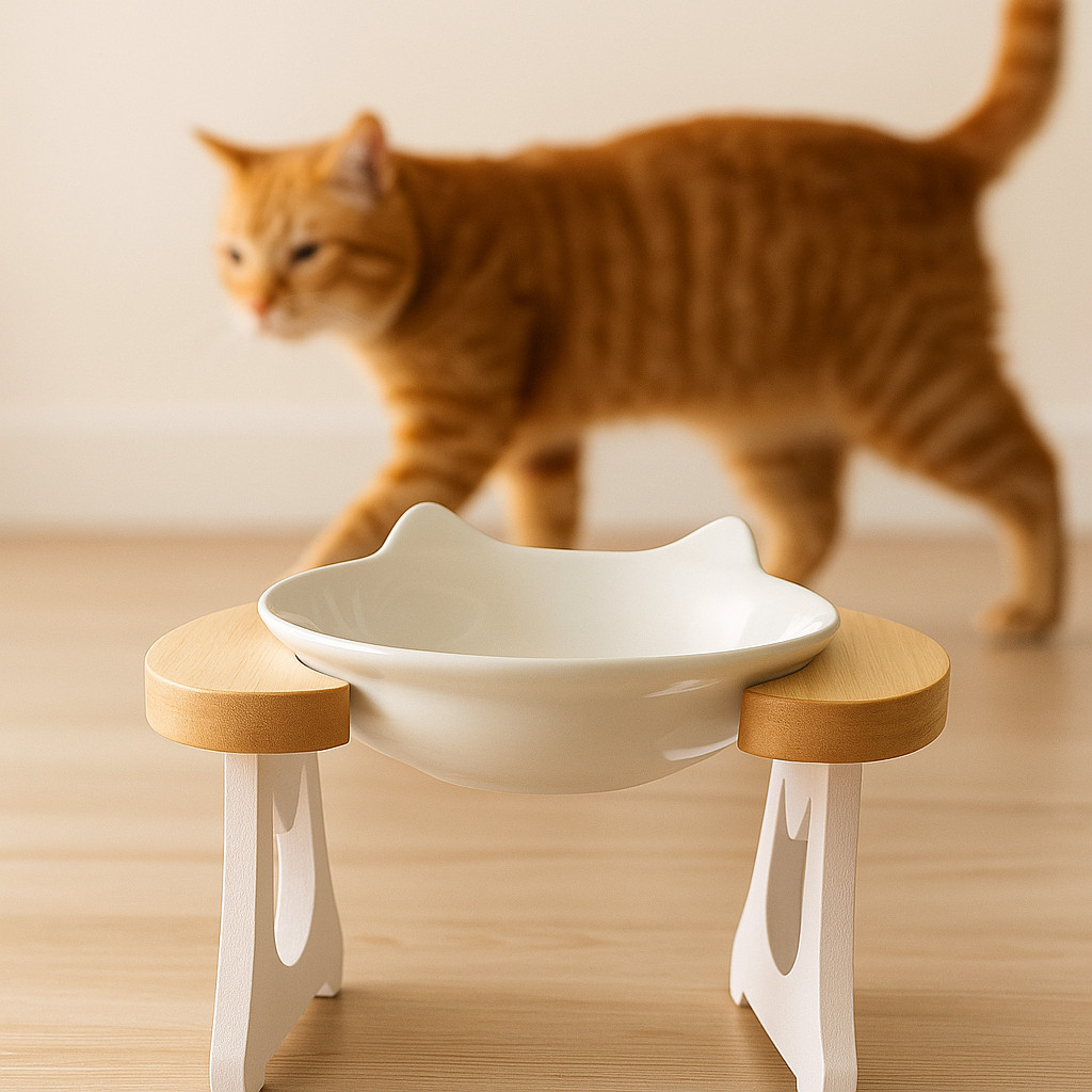 COMEDOURO ELEVADO PARA GATOS COM TIGELA DE PORCELANA ERGONÔMICO