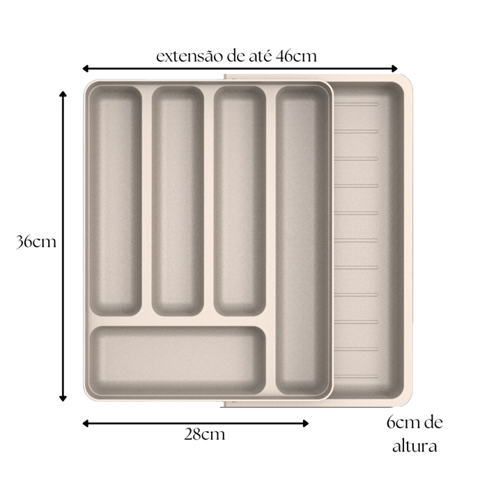 Organizador Extensível de Gavetas Porta Talheres Utensílios Cozinha Bandeja com Extensor Grande OU