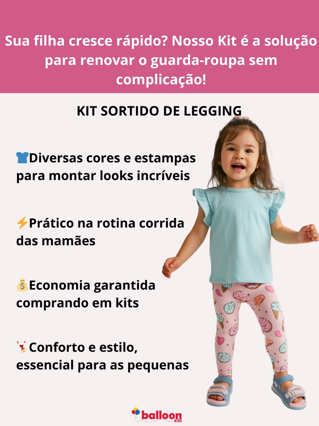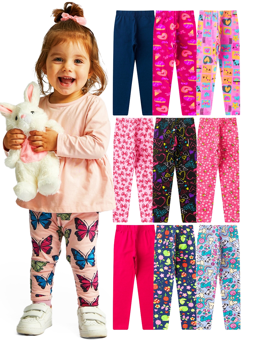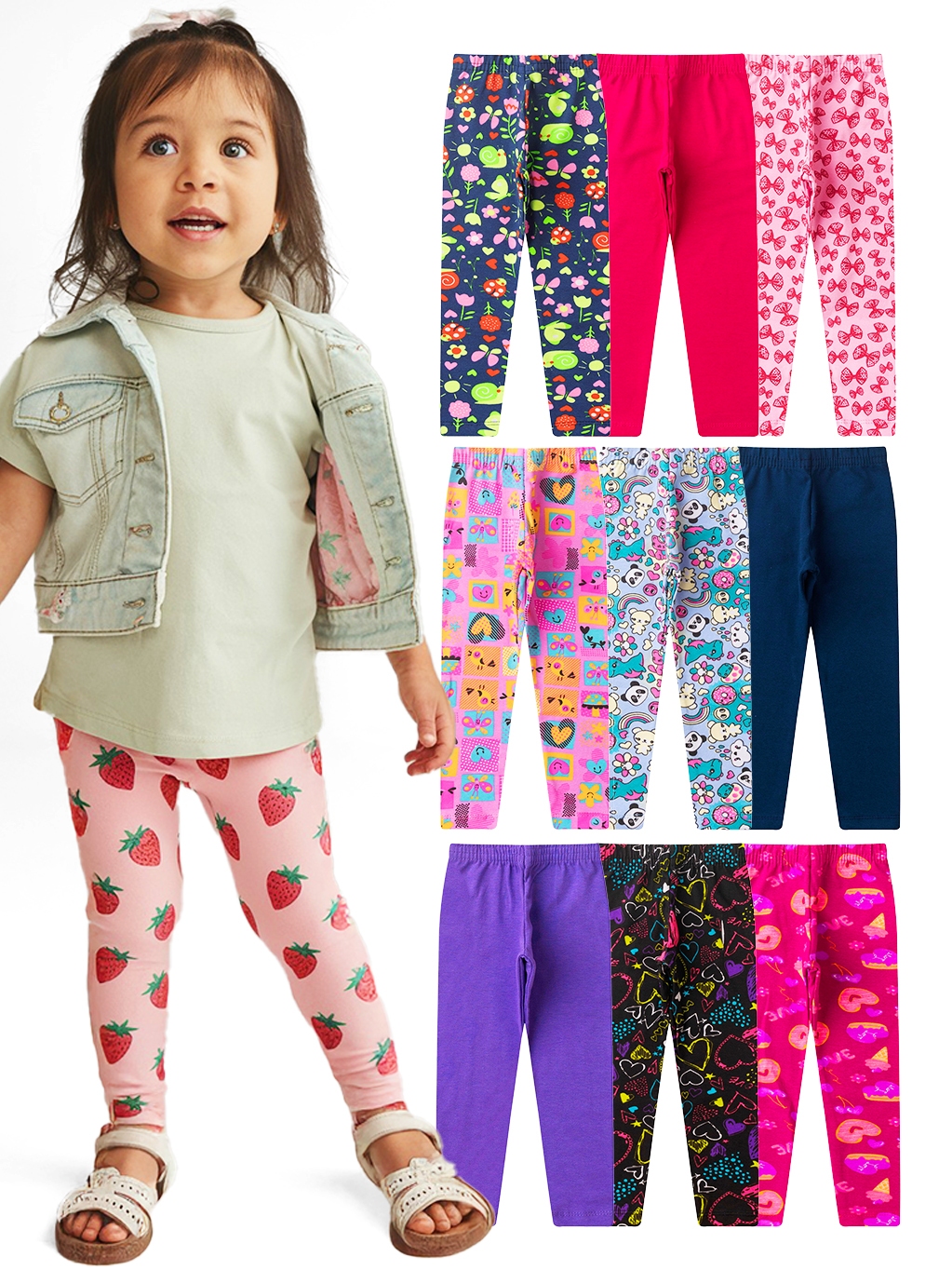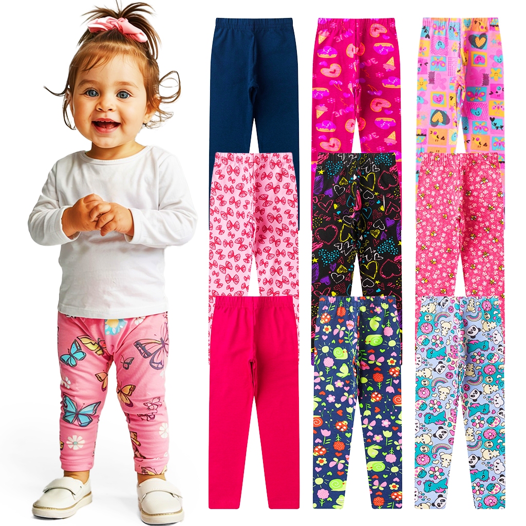Kit de 2, 3 ou 4 Calças Legging de Cotton Infantil Menina Premium Kit Sortido